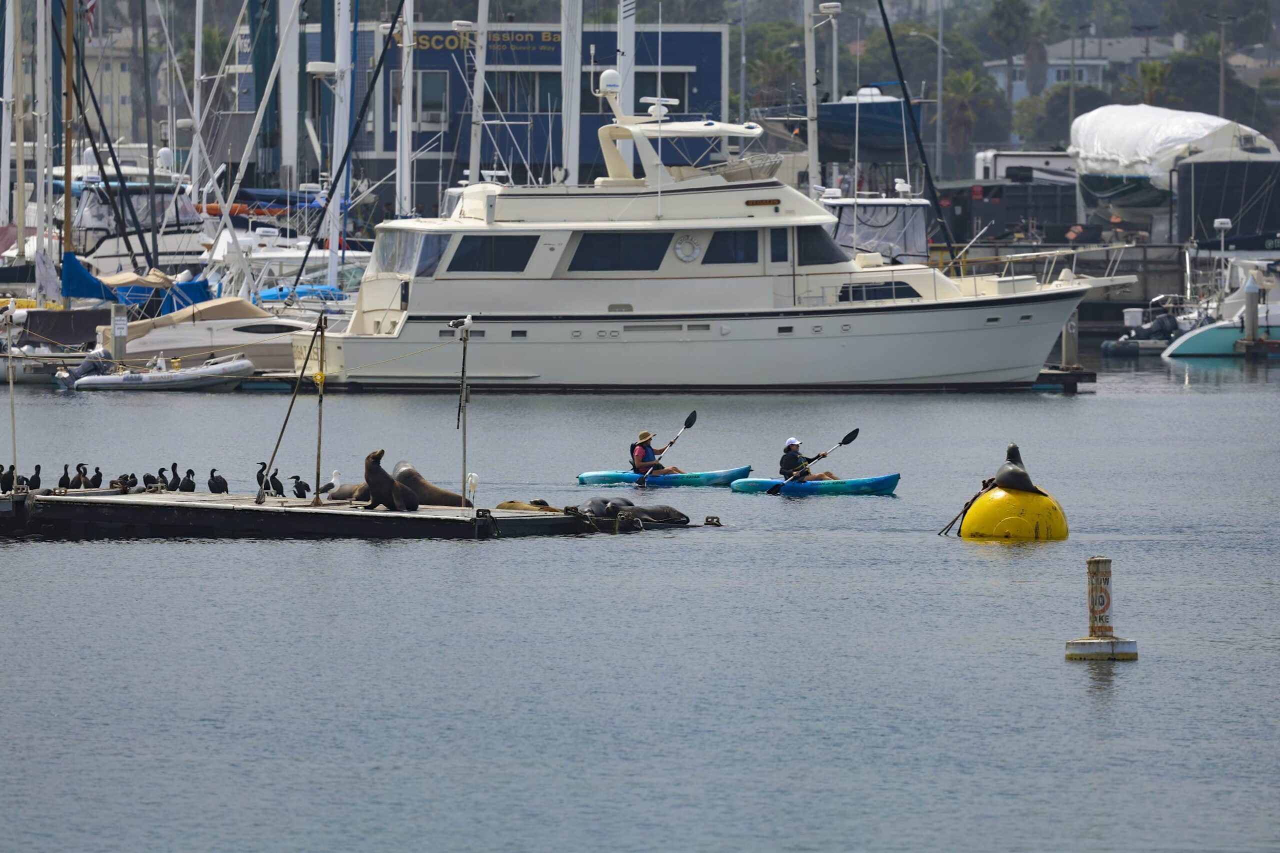 At the beginning and ending of our afternoon trip, found in the Mission Bay Channel entrance, we spotted several Coastal bottlenose dolphins, a delight, as they waited for us to come close and got a nice play-date with the pressure wave created by our moving vessel.