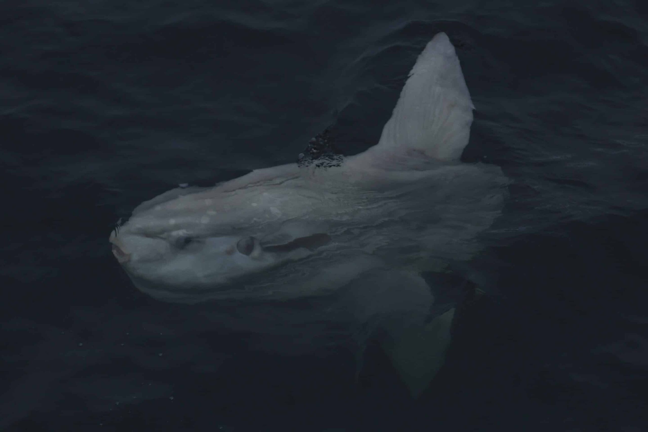 The ocean was teaming with life, starting with great looks at a harbour seal right after departing the dock. Heading southwest chasing some pelicans and shearwaters a small pod of ~30 long beaked common dolphins showed up in the mix. A larger pod of long beaks in a feeding frenzy brought us to a gorgeous humpback whale! We followed it for a few breath cycles watching it follow bird piles to different feeding areas. The fun wasn’t over while getting some superb looks at a fairly large mola mola! Captain John turned us back towards Mission Bay Channel and saw an enormous splash! Our friend the humpback whale started breaching continuously!! This happy humpback breached OVER 30 times!! It was incredible!! We didn’t get much of a sunset today but the stunning show we were treated to more than made up for it. Good times had by all including the wildlife.