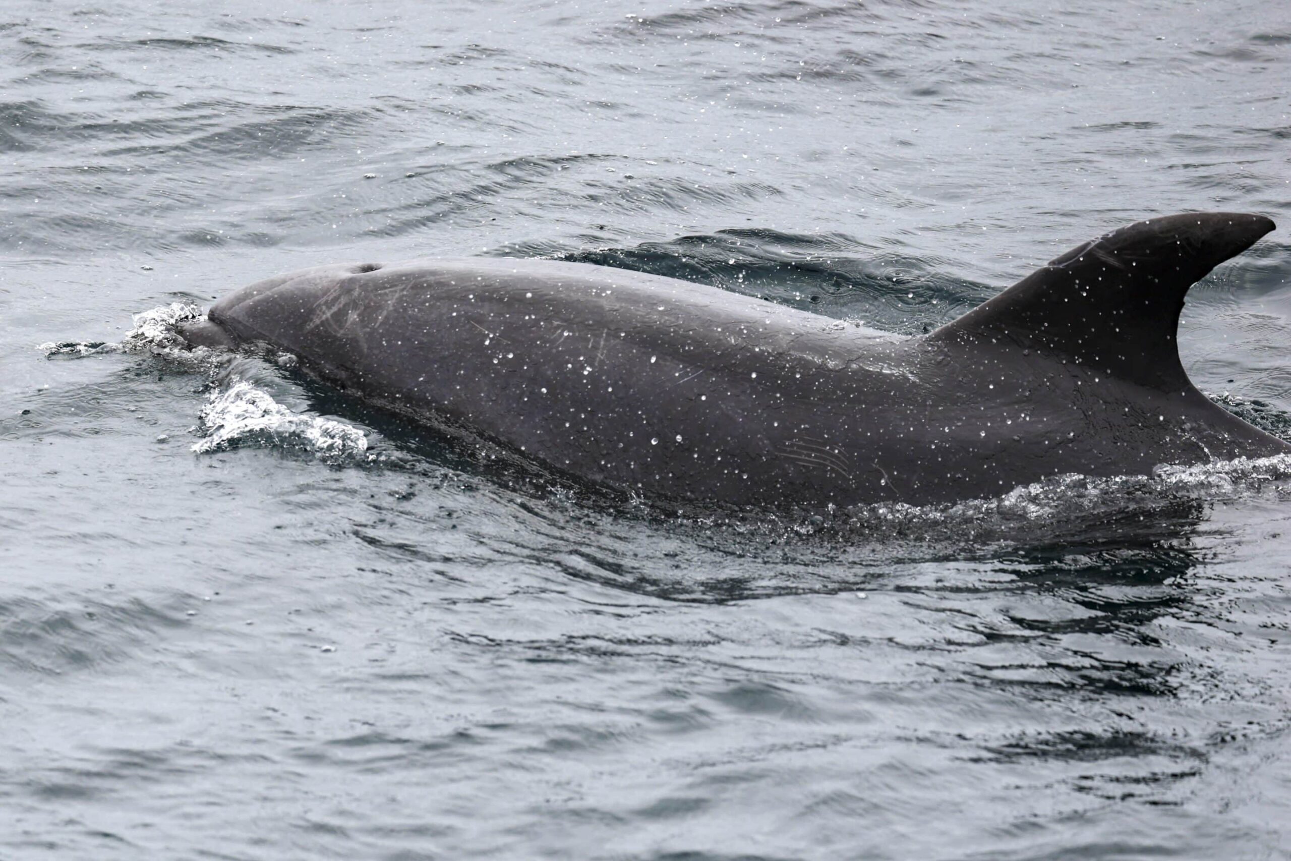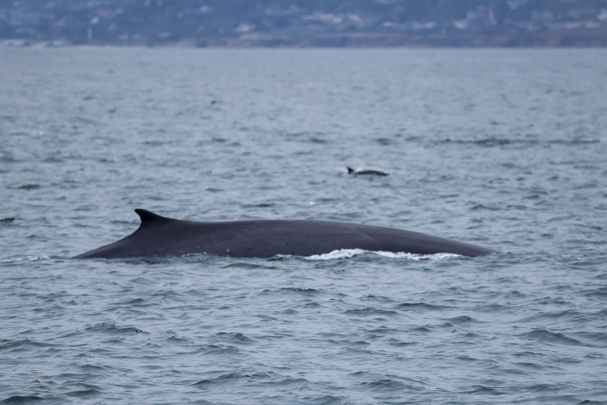 What did the Fin whale say to the Humpback whale? – Oh nothing, they just waved! We absolutely krillllllleddd it today! We started off our trip by seeing a harbor seal, purple-striped jelly and plenty of California sea lions all found within Quivera Basin. Then, we travelled out west towards La Jolla and encountered ~10 offshore bottlenose dolphins which led us towards a MEGA pod of long-beaked common dolphins! We also saw lots of diving birds, such as California brown pelicans, elegant terns, and a few pink-footed shearwaters! The LB common dolphriends were being so playful as they swam alongside our boat. We also found a humpback whale and a fin whale! They were all hanging out in the same general area. The humpback whale gave us a show by surfacing right next to our port bow and lifting its tail flukes multiple times! We couldn’t have asked for a more magical time on the Pacific Ocean! Please join us tomorrow for more ocean fun.