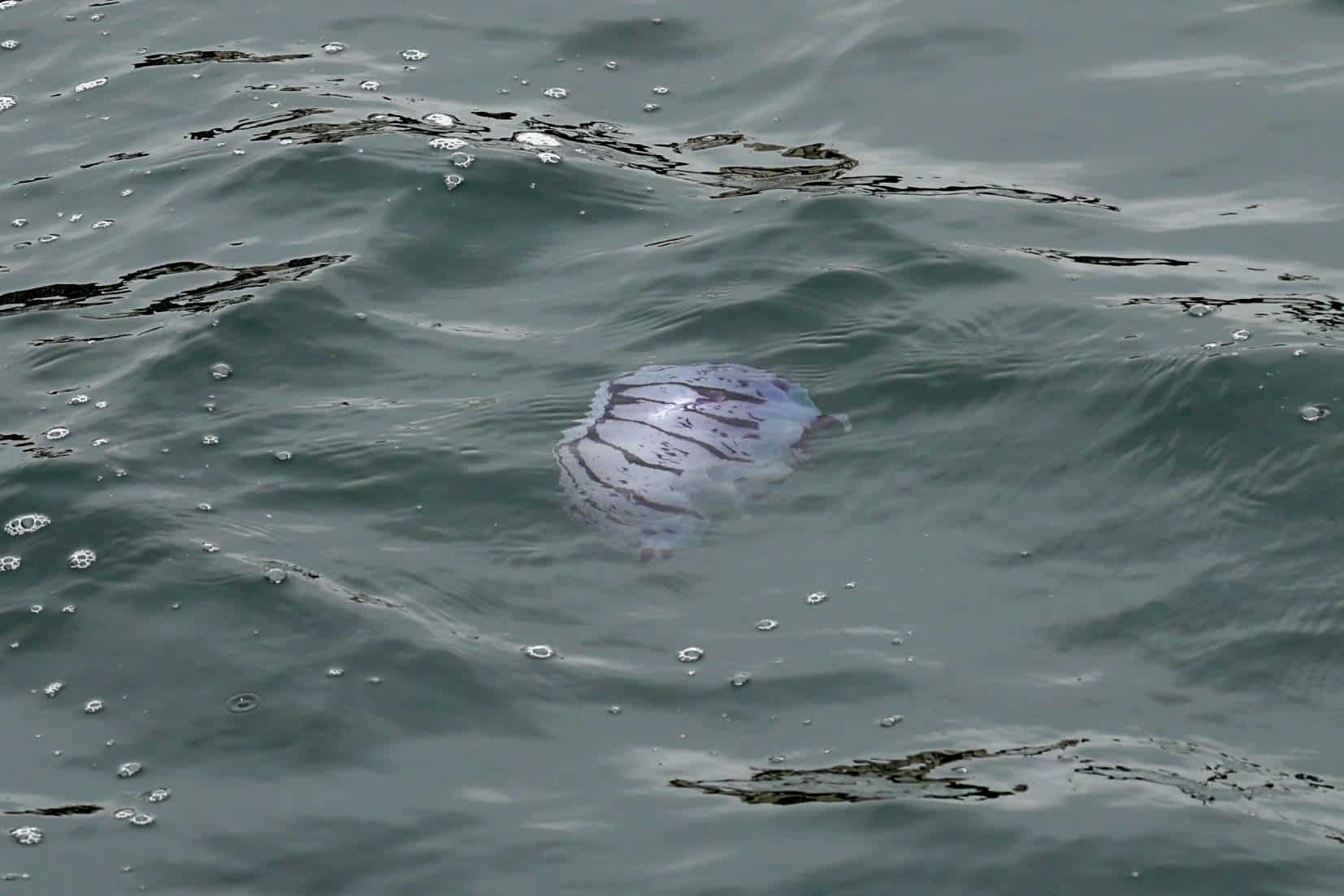 On our afternoon cruise, we headed back out to all the action up north! Along the way, we spotted a purple-striped jellyfish, and a gull feeding on left-over rockfish. We enjoyed coastal views of Pacific beach, La Jolla, and even Del Mar! While following the drop-off to the La Jolla canyon, we spotted the feeding birds and dolphins! The first pod was an estimated ~100 Long-beaked Common dolphins that raced to the north! We caught up with them and could see them on both sides of the boat. We continued even more to the north and enjoyed watching ~600 Long-beaked Common dolphins! They were densely aggregated and surrounded our boat! We could hear them whistling and were excited to see cow/calf pairs. There were also a couple bait balls that we cruised by! On our way back toward the south two more small pods were sighted totaling ~100 individuals altogether.