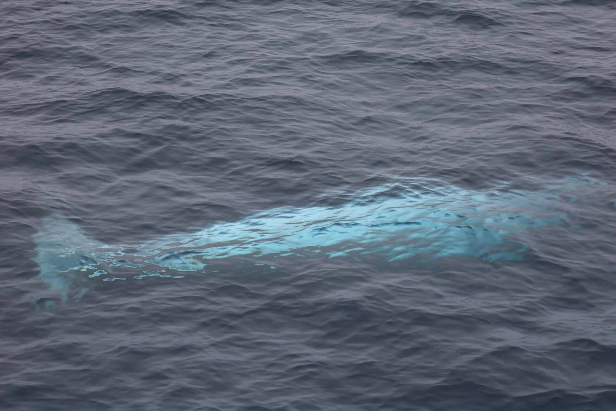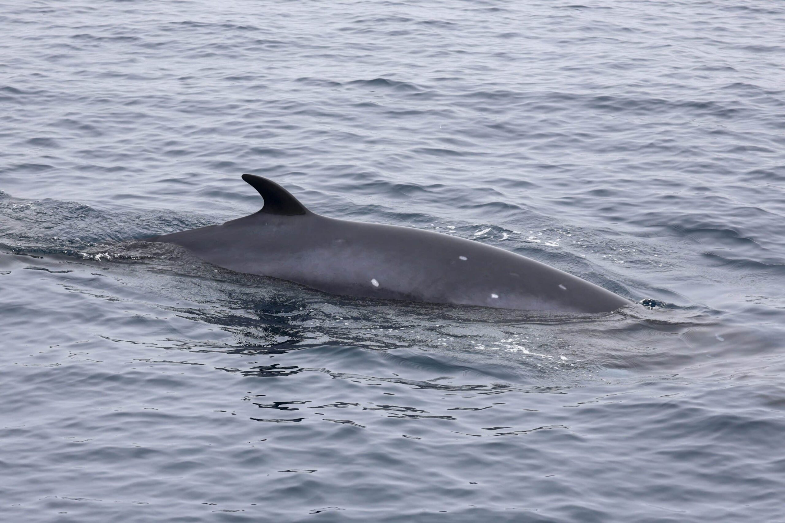 We started our trip this morning by shooting out to the west toward deeper water. We passed the drop-off and a couple miles beyond it, we spotted a friendly Minke whale! We got amazing looks as the Minke popped up all around our boat super close to the boat. We were so excited to see the Minke surface and and then turn and swim upside down and flash us its white belly! Through the waters surface, it looked like a gorgeous turquoise glow! It felt like it was asking for belly rubs! It was the same individual we have been seeing over the last week. You can see distinct cookie-cutter shark bites all over its back. We noticed it begin to travel to the west so we waved goodbye and continue to the coast. We were crossing the drop-off and another Minke popped up in front of us! This one was slightly larger and had an all dark back with no visible cookie-cutter shark bites. The dorsal also look taller and more hooked. It was Minke Madness!