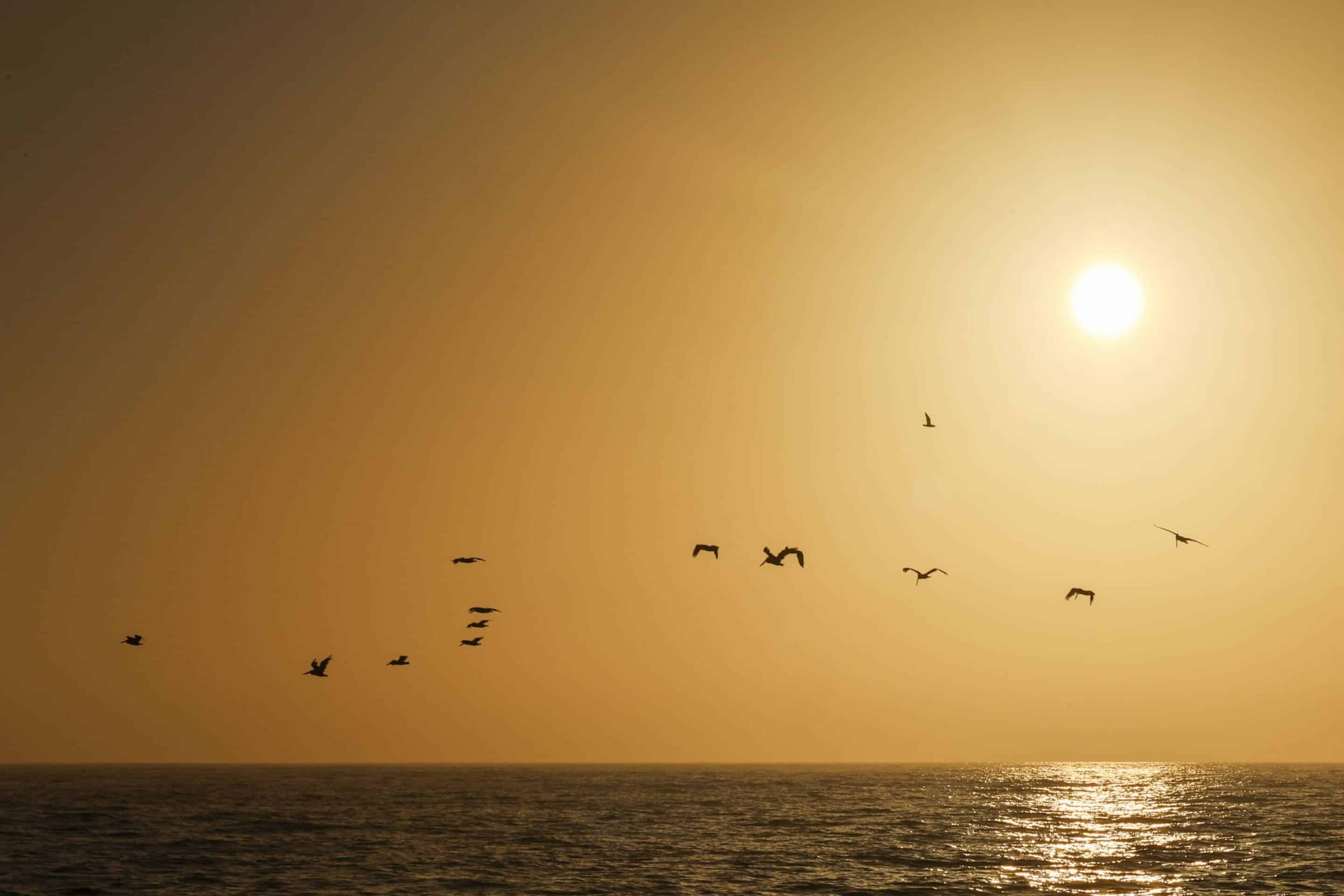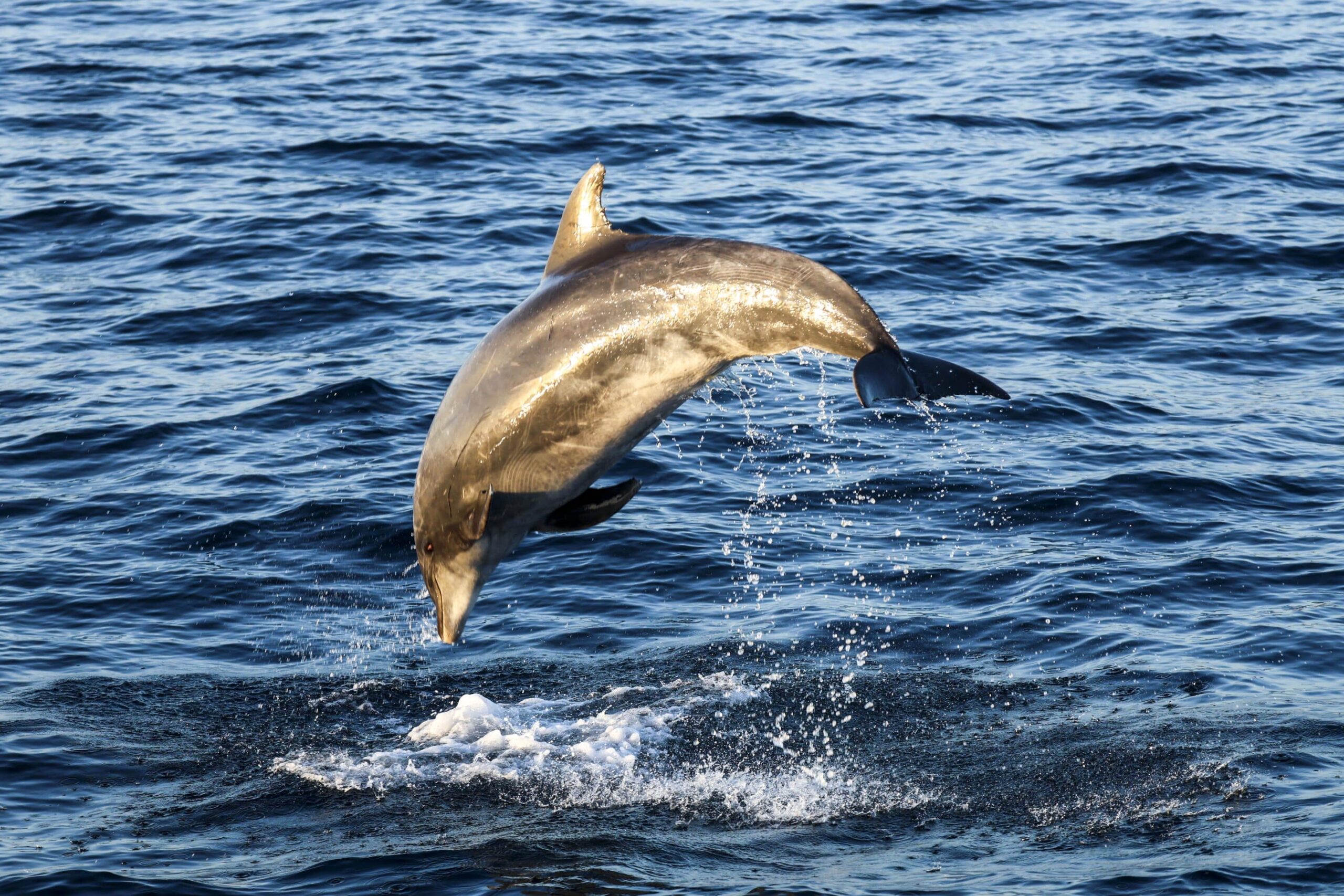 We had an amazing sunset trip out on the Pacific Ocean! We got a glimpse of some of the large California sea lion males lounging on the bait receiver as we made our way out of the basin. As we accelerated to leave the jetties, Captain Michael spotted some dorsal fins- inshore bottlenose dolphins!!! This group of about 12 circled and had fun with our passengers who excitedly watched from the boat. They followed for a bit as we left the jetties. There were excellent conditions on the water today, with a light wind and fantastic water visibility. As we made our way straight out to the west, just past the dropoff we ran into a nursery pod of about 75 short-beaked common dolphins! It looked like these mommas were teaching their babies how to breach, as we all gasped at each calf that rocketed out of the water! We eventually left the group and headed a bit to the NW, then eventually north. We saw more blows in the distance paired with lots of bird activity- we had found some offshore bottlenose! This group was SUPER acrobatic, we got fantastic photos of them fully launching out of the water, displaying some possible courtship behaviors. Some of them even swam right next to the boat on their sides, looking straight up at us. We eventually made our final turn to head towards home, but they followed us for almost a mile, riding the bow and surprising us with breaches every now and then.