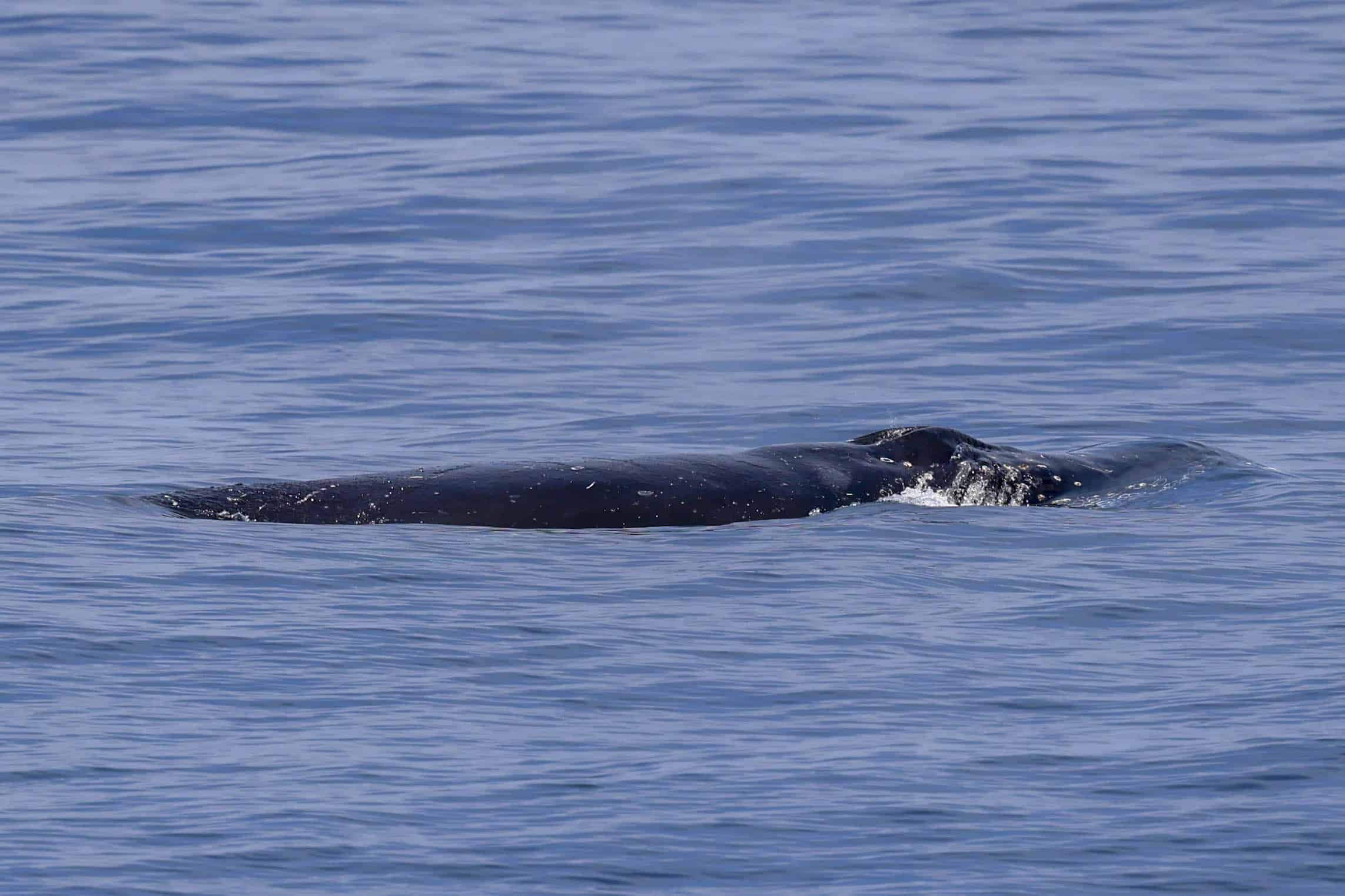 The real prize was our BLUE WHALE SIGHTING! We has a cow/calf blue whale cruising north WAY off shore – we’re fortunate to have many ocean going friends on the water – we were tipped off by Gone Whale Watching that there were blues to be found so, Captain Michael went the extra mile to run us down to the zone! We saw one lighter silvery whale and one steely grey whale cruising up the line. The stayed on the surface for a long time, allowing us great looks! We were lucky enough to see the flukes of these great whales as they went on dives. Blue whales are rare enough to see, but to see their flukes – even more rare! The MASSIVE 25 foot span of that tail is beyond breath taking. Blue whale calf’s are the worlds BIGGEST babies – starting life at 23 ft and 6,000 lbs – they can gain up to 10 lbs per hour and 250lbs per day just drinking moms milk.