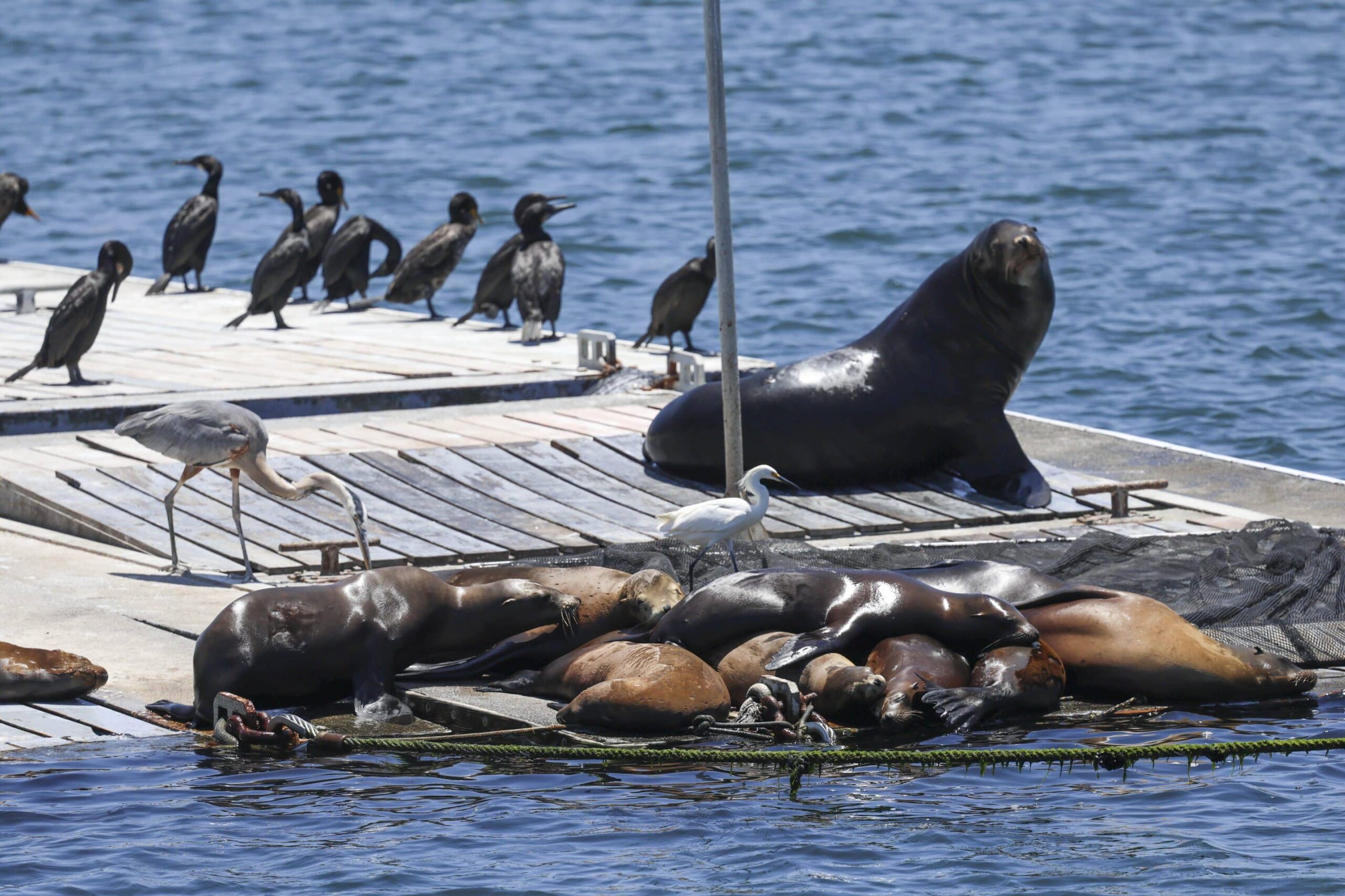 We began our morning trip with a sounding of our horn, as several sea kayakers were crossing our bow and blocking our way to the bait dock. Captain Brian gave us excellent views of our feathered and flippered friends. We all had the opportunity to practice our photographic skills by getting close-ups of the entertaining sea lions, herons, egrets, gulls, cormorants and pelicans. We were all excited about the sunny weather, as we have had a lot of the June gloom of late, a temperature inversion in which the cool ocean cools the warm, moisture-filled air that crosses the cold California Current and condenses, forming a marine layer. Our first sighting included a boisterous pod of Long-beaked common dolphins. We saw cow-calf pairs, bulls and at least 1000 dolphins cavorting, foraging and jockeying for position off of the bow where a pressure wave pushes them forward for a “free ride”. Next, we found a huge Mola mola or ocean sunfish near the surface. This was followed by a pod of Offshore bottlenose dolphins, much larger in size than the common dolphins. The ocean breeze felt so refreshing, the visibility was excellent and we covered a huge search area. This trip we could not find a spout from a baleen whale. As many of you know, it is our Blue Whale season, which runs from late May to early July. Because they are endangered with extinction, they are not seen everyday, so do give it a couple more chances and book another trip sometime soon.