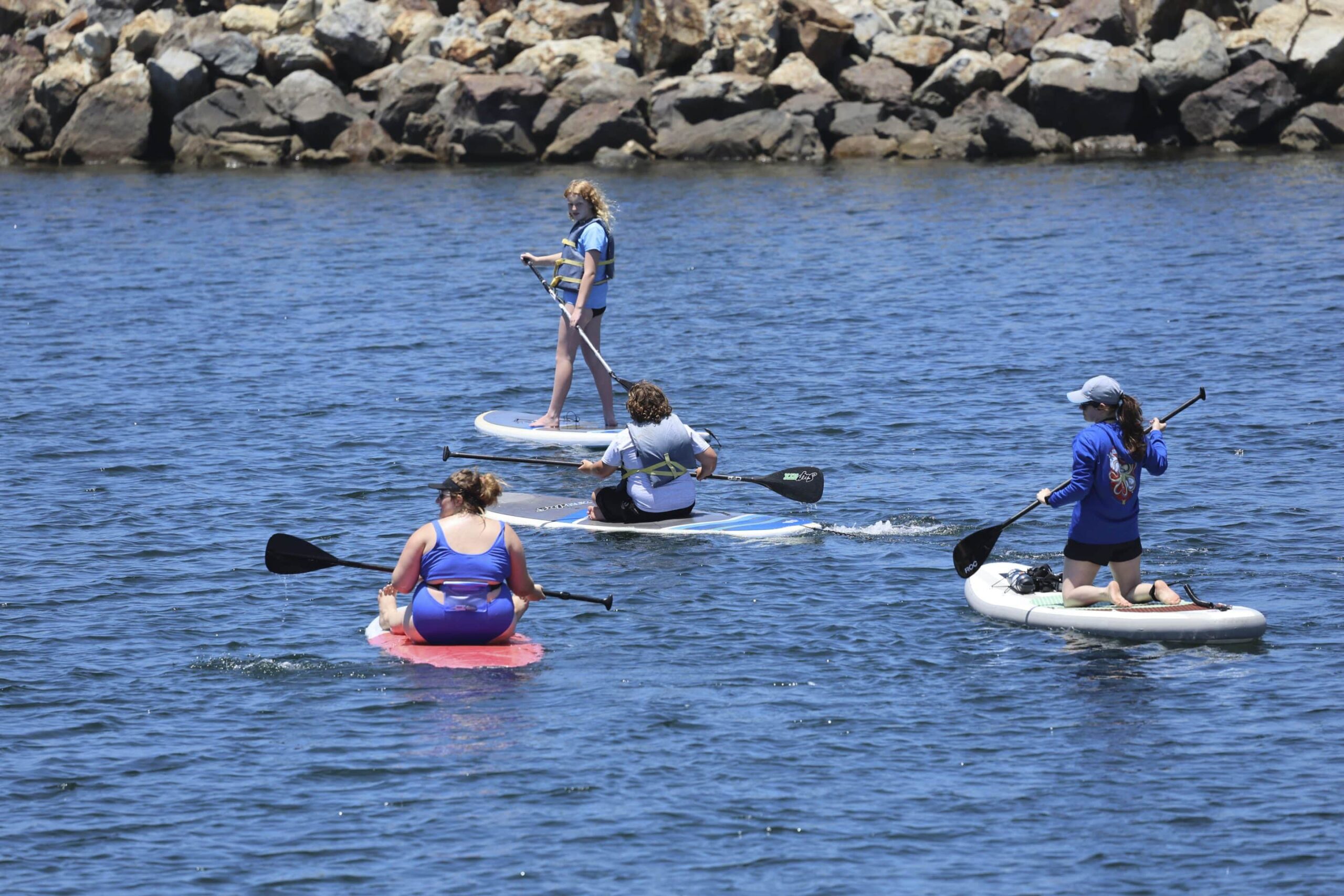 On our afternoon trip, it was almost identical to our morning trip for dolphin sightings seen thoughout our voyage. Instead of one ocean sunfish, we had two large sunfish together at the surface. The largest boney fish in the world, the sunfish or Mola mola can grow to over 2000 lbs by consuming jellyfish. After a short diversion for our “fish watching tour” we continued due west and found another pod of friendly playful dolphins. Everyone seemed to enjoy these social mammals as they kept coming back to play on our bow wave. Throughout the tour we saw many hundreds of gull relatives, the Elegant and Common terns. The gulls are opportunistic feeders, following dolphins to pick-up the leftover, discombobulated fish injured or half-eaten by the dolphins. Gulls can also be pirates or parasitic as they harass the terns and shearwaters to the point that they cough-up, give up or regurgitate their hard-earned meal to the gulls. We came back to what seemed like a parade of various vessels in the Mission Bay Channel and Quivira Basin, including SUP, jet-ski, sea kayak, small fishing boats, RHIBs, yachts, sailboats, etc. Come join us for a three hour tour soon, that’s right, a three-hour-tour. -Naturalist Greg