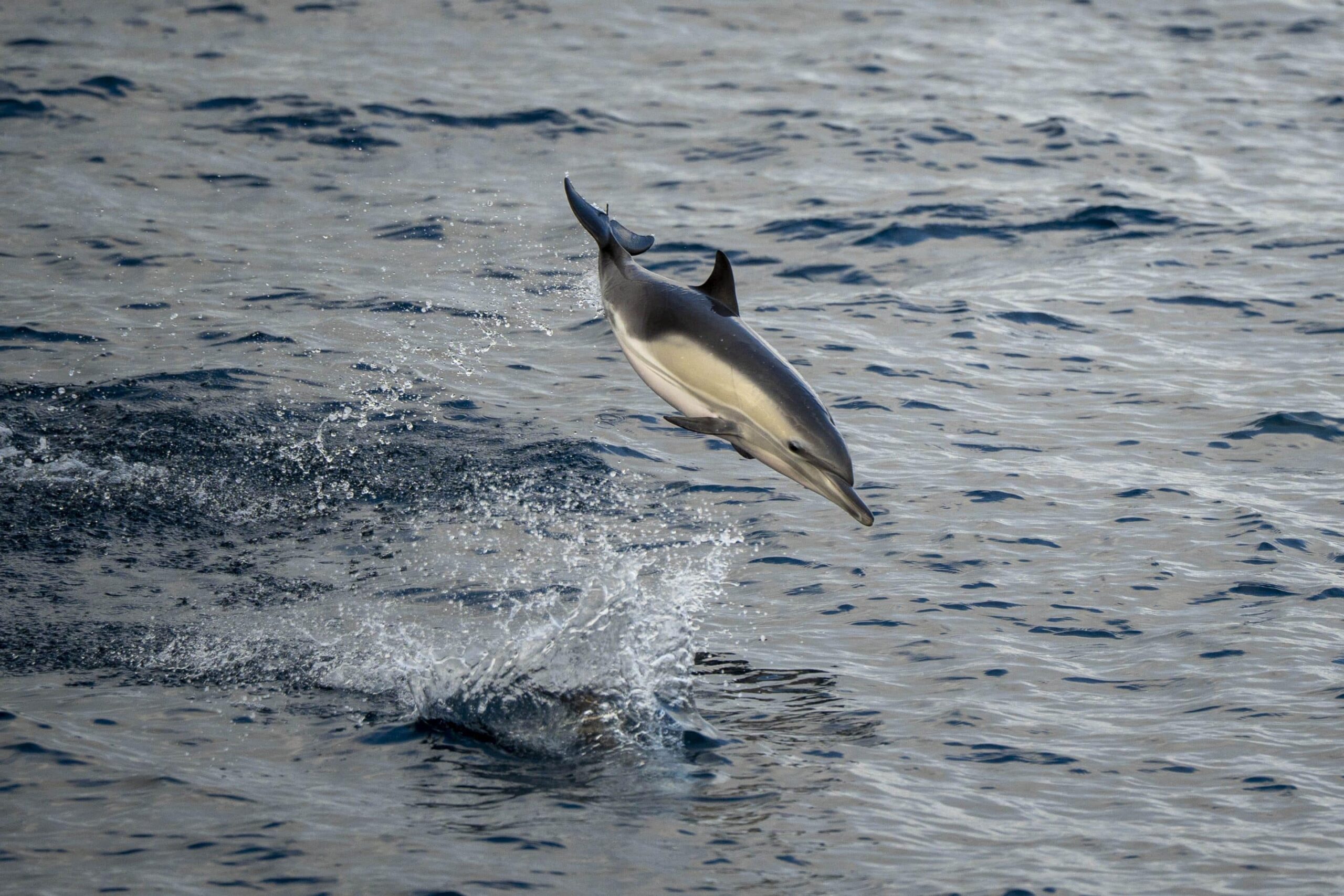 The sunset was eternal, we had low lying stratus clouds with gorgeous sun rays peering through for the vast majority of the trip. We were lucky to find a MEGA POD of long beaked common dolphins dolphins – totaling nearly TWO THOUSAND over many miles of ocean. We observed every behavior they display, from breaches to hunting to surfing and even stanmpeding. With the gorgeous sunset lighting, we watched in awe as the silver lined shilouetts errupted out of the water with the striking sunset backdrop.
