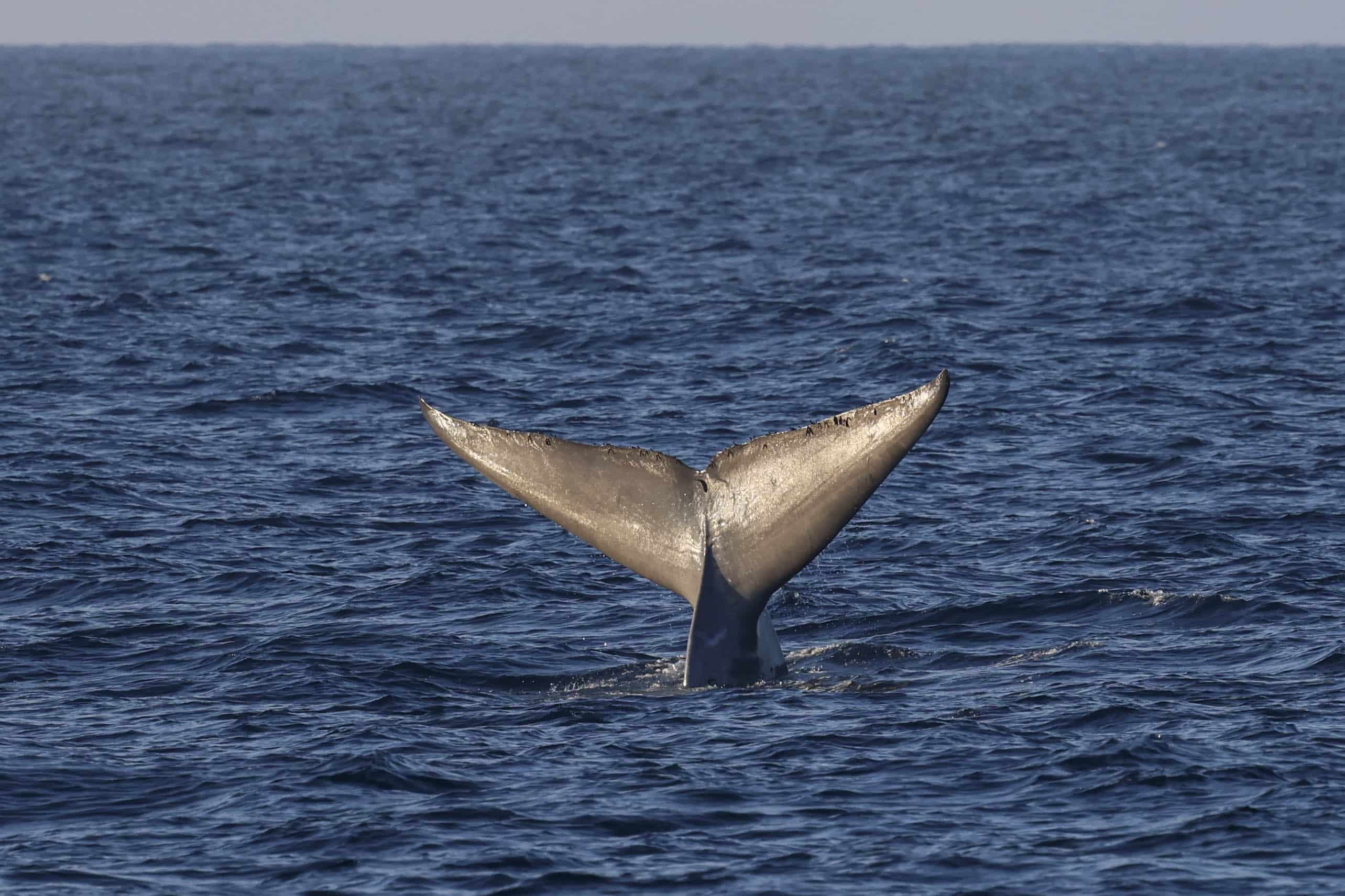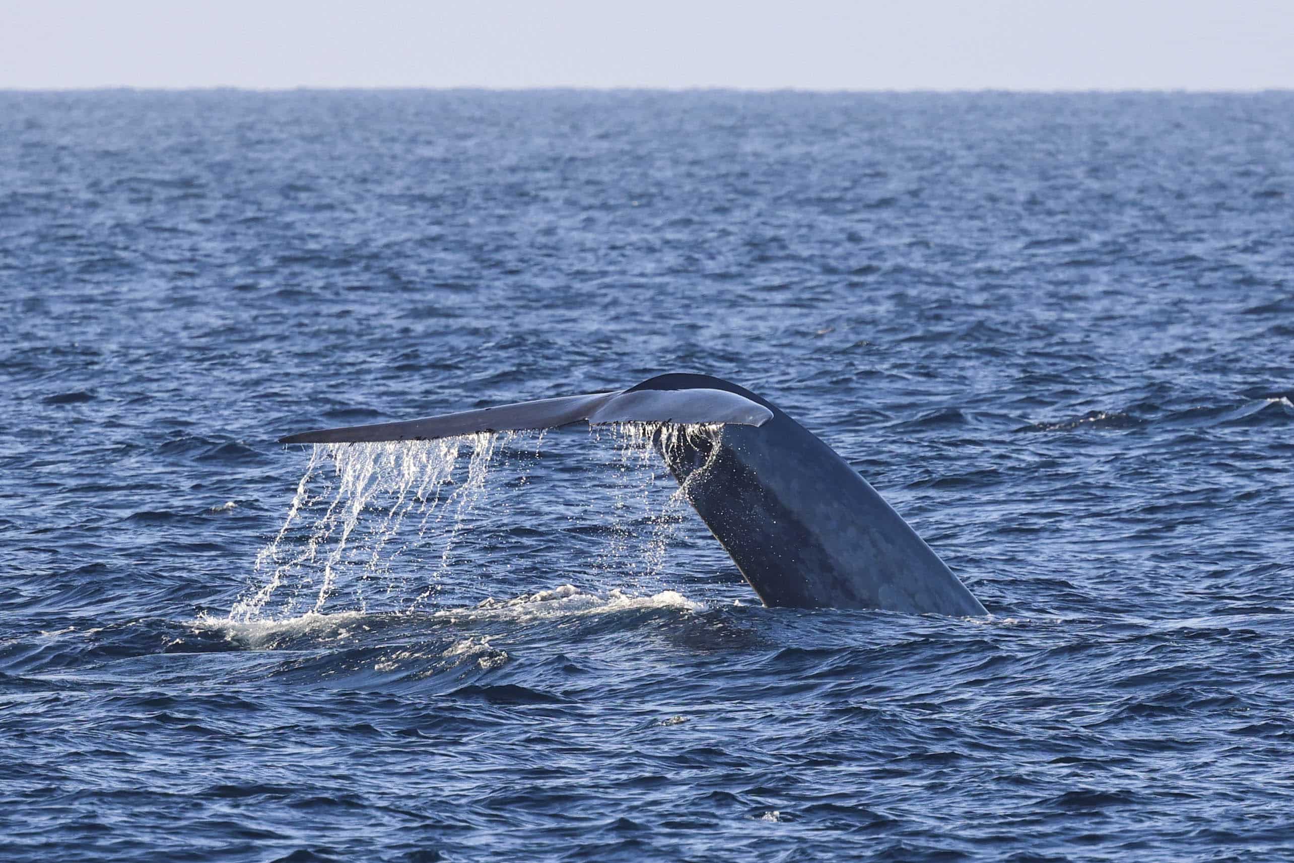 On our sunset trip, we had such an amazing energetic group of passenger that were excited to see the largest animal on the planet! We traveled ~14-miles to the west and caught up with a small pod of ~40 Offshore bottlenose dolphins that were showing off by leaping and porpoising! They raced over to us to check us out! We cruised over and caught up with a single Blue whale that was up for 10 or so breaths, before going down with the most epic view of its tail being raised! We could see its towering 30-ft spout and the nice arch of the back too! We had limited time with it, so we were so grateful we got to spend two cycles with it! To top it all off we enjoyed a stunning sunset!