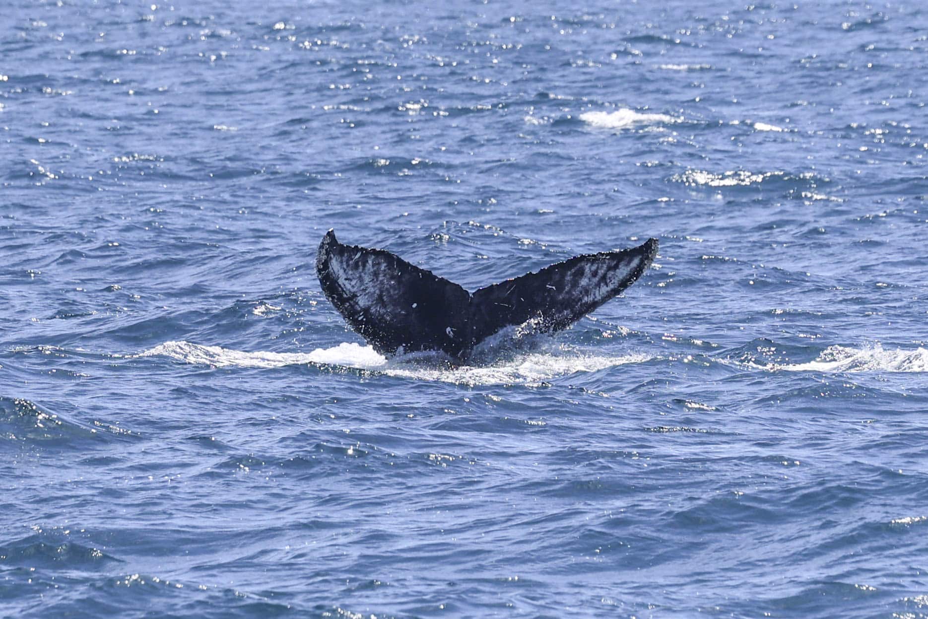 We had an equally exciting afternoon trip spent with a BREACHING, tail-slapping, pec-slapping Humpback! First, we encountered about 100 Long-beaked Common dolphins cruising to the south. We got great looks as they were boat friendly and surfed next to us! We continued on and found an even larger pod with about 400 more Commons! They were observed feeding on anchovies! We even saw a bait ball that was about 50-ft in diameter! We were stoked to see them traveling fast to the north with great speed, porpoising out of the water! Captain Michael had a great hunch to head north to La Jolla. He sighted a massive splash in front of us a couple miles ahead! We watched through our binoculars as a very surface-active Humpback tail-lobbed several times! We even observed it breach once! After finally catching up with it, we were squealing with excitement as it breached 3x, tail-slapped numerous times, and pec-slapped twice. We also got a super close look as it mugged us and surfaced within 20-ft from the boat! The breaches were random and unpredictable as they usually are and I unfortunately was always on the wrong side of the boat, so no photo to share! Lol! One of the passengers graciously shared their content, so please check that out!