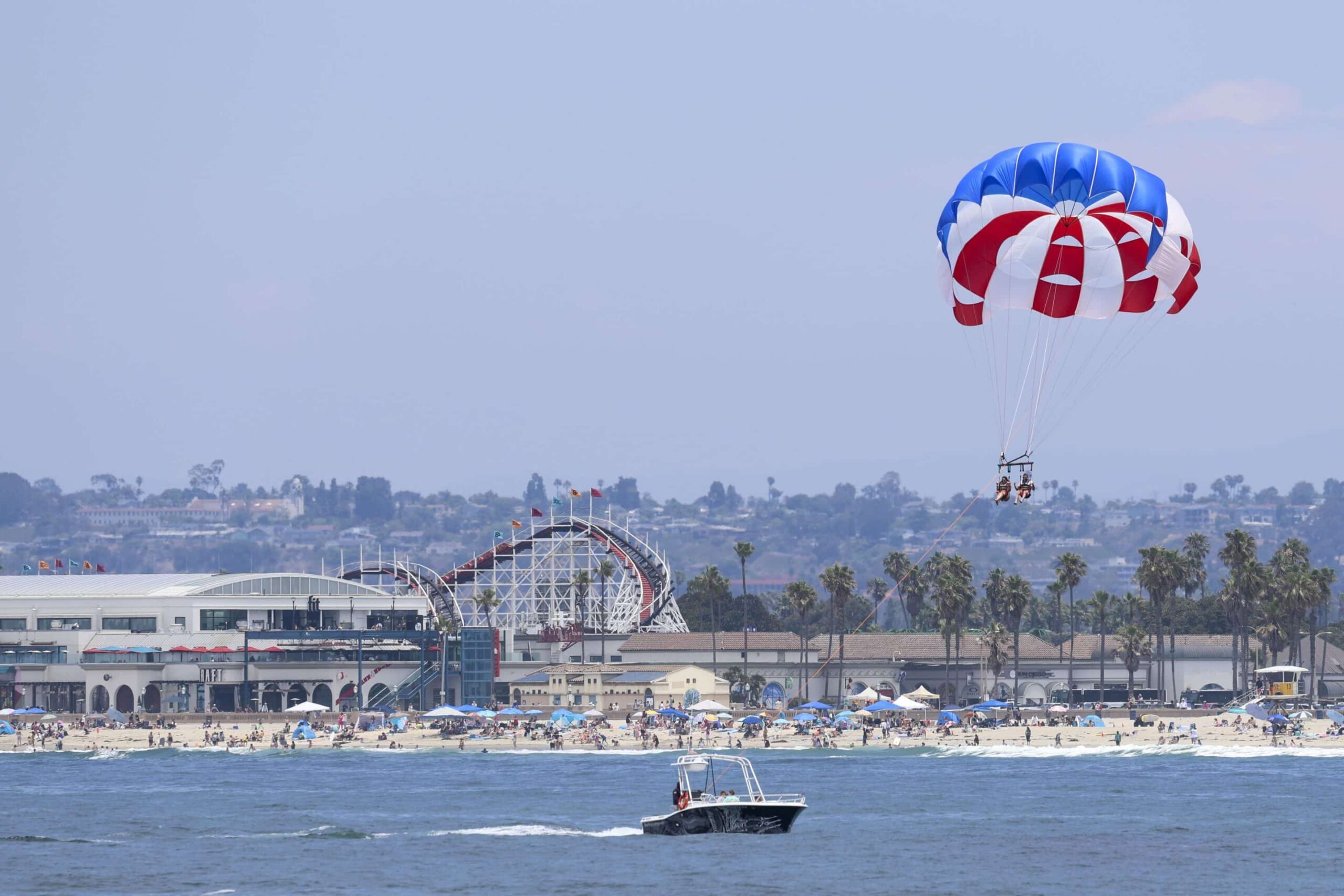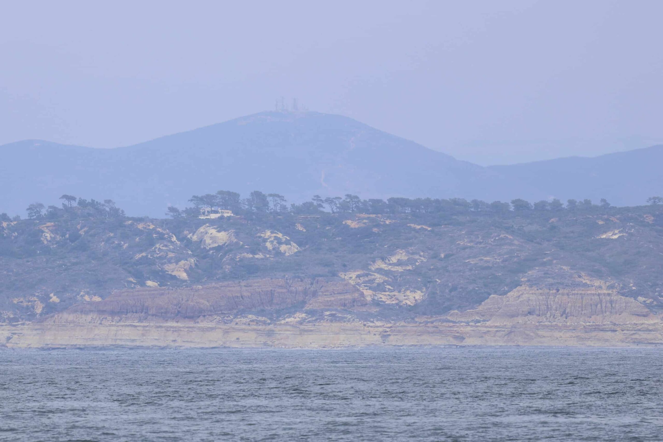 On our afternoon trip, we motored north past LaJolla to the coastal seaside town of Del Mar. Of course, we were at least 5-miles offshore and about 12-miles from our destination in Mission Bay. We found three pods of Common Dolphins porpoising, the largest pod was our last pod. They exhibited cool behavior, including foraging, courtship and play. When not chasing and eating fish, the dolphins looked at us and enjoyed getting a little surf sesh in, riding our wake and the pressure wave produced by our vessel moving forward. Our scenery was downright outstanding and brilliant. We could see the Del Mar County Fair, Torrey Pines State Natural Reserve and the eroded ‘Badland’ topography. Pargliders jumping off the cliff at the Gliderport, golfers on the North and South Torrey Pines Golf Courses; Salk Institute; UCSD and Scripps Institution of Oceanography. We did not get any large whales today, nor did the other whale watch companies, but we hope you give it another chance to witness the beauty of offshore San Diego on a future whale watch. —Naturalist Greg McCormack