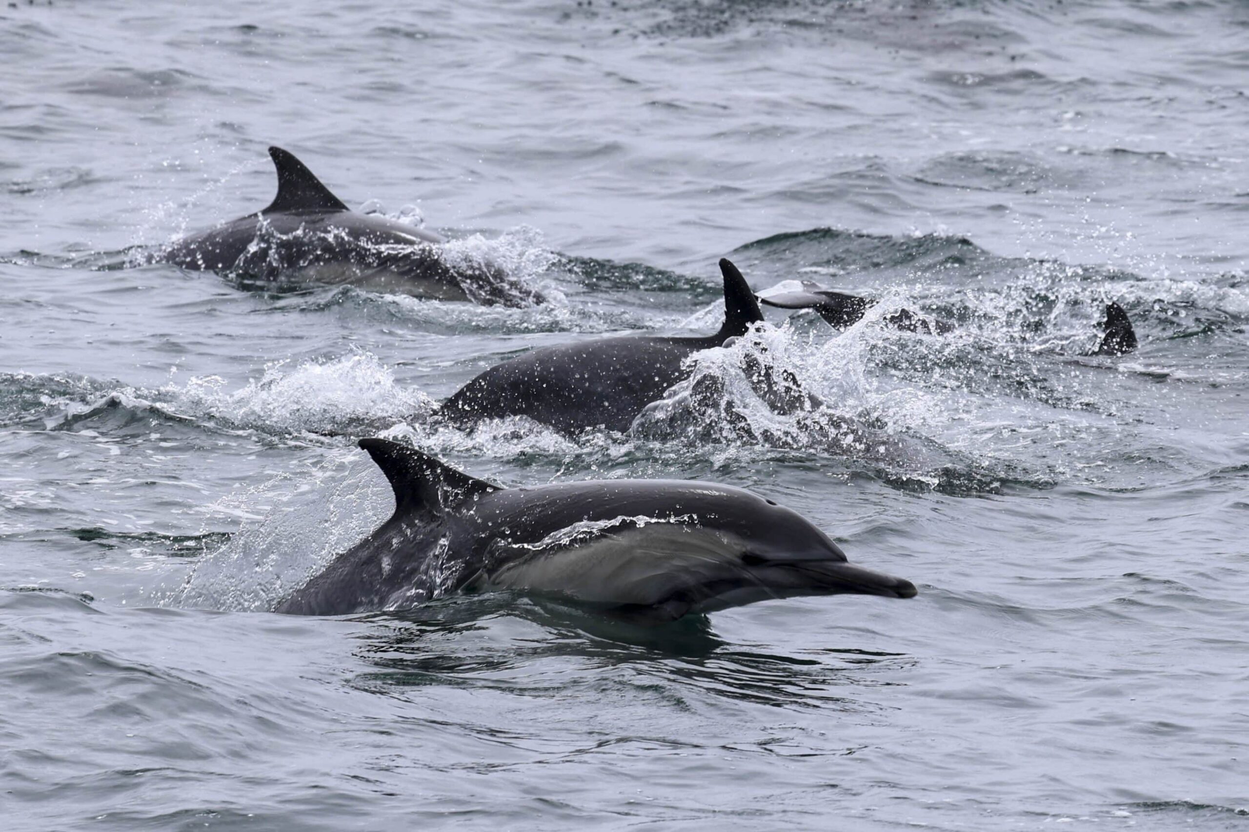 The M/V Privateer voyaged to the southwest out to the 9-Mile Bank, a deep water feature highlighted by the Coronado Escarpment in about 1,700’ of water. This is where we saw thousands of terns and shearwaters. The latter have migrations that involve flying from where they are born in the southern hemisphere to feeding grounds in the northern hemisphere, from Chile and New Zealand and the Southern Ocean. We were lucky in witnessing the grace and beauty of a couple pods of Common Dolphins porpoising and feeding on the forage fish, mainly sardines and anchovies.