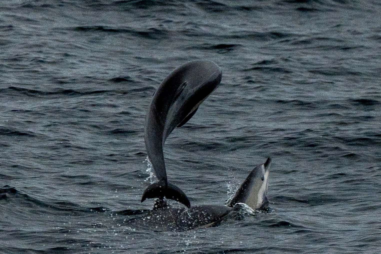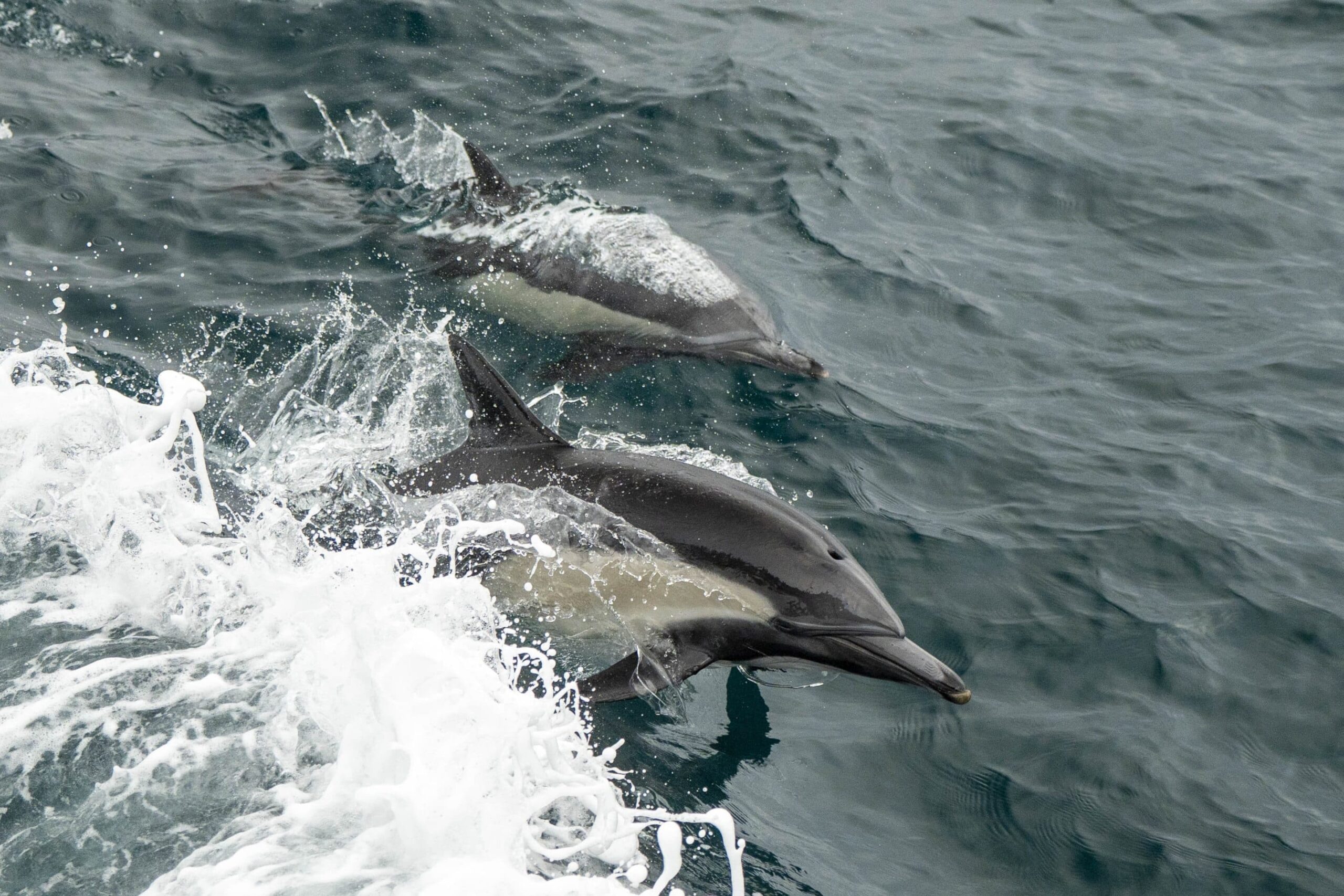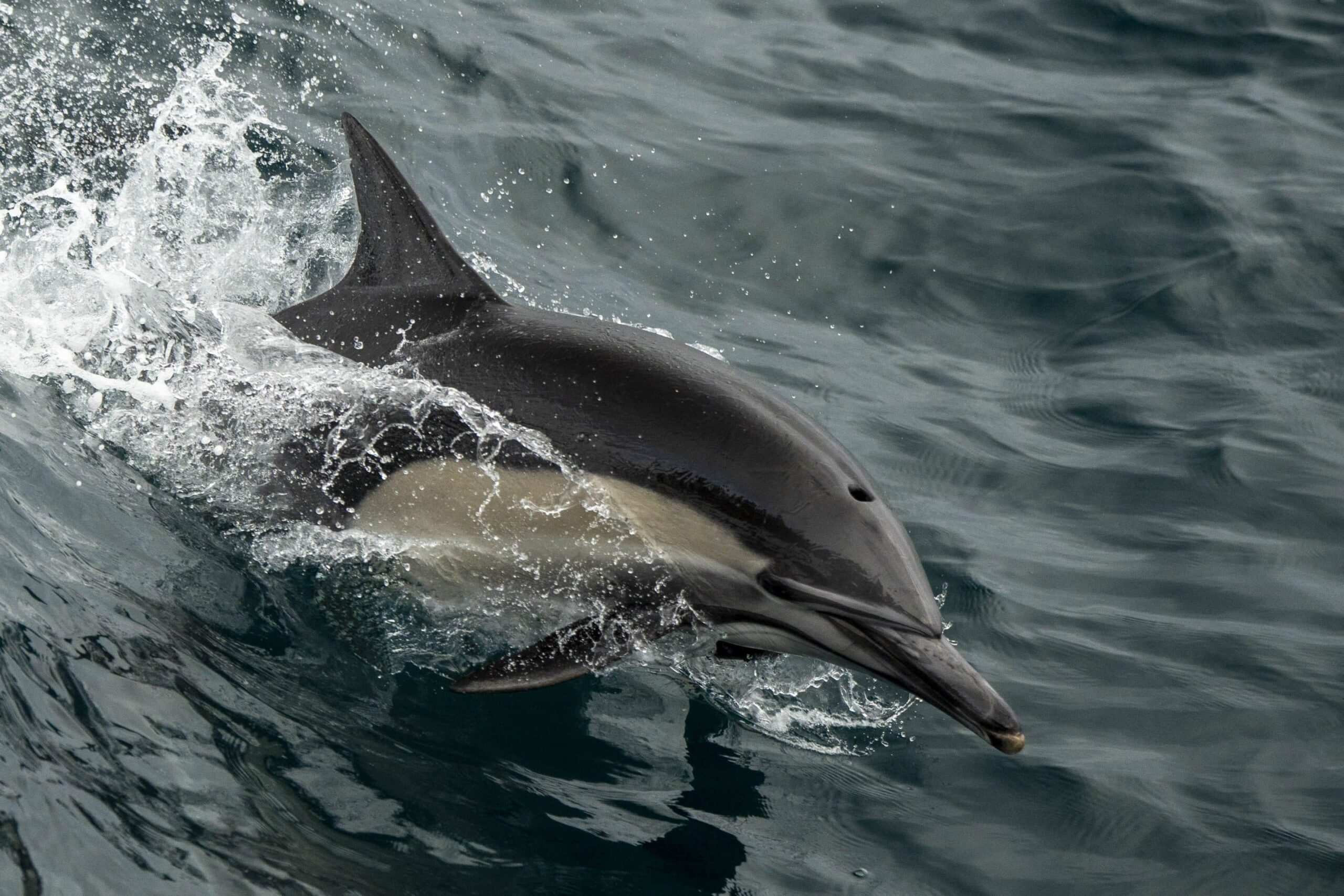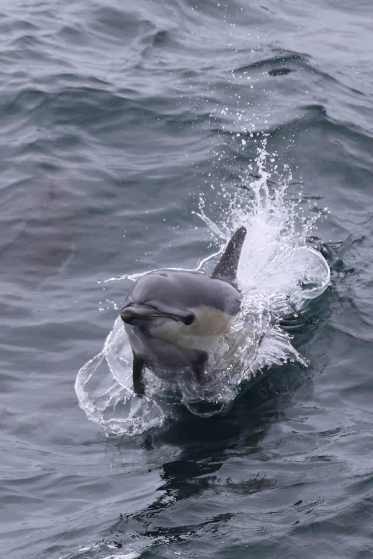 Our morning trip had 100 short- beaked common dolphins leaping joyfully all around our boat far offshore! It seemed as the day went on we found more and more dolphins! Our afternoon trip had HUNDREDS of long- beaked common dolphins that lead us to a sneaky minke whale! We got a few good looks at the minke but decided to continue our search for more cooperative wild life. We found even more dolphins and a massive mola mola, the largest boney fish in the sea. Setting off to a cloudy but stunningly dramatic horizon, our sunset trip had beautiful conditions with about 5 pods of dolphins along the way, a mix of the sub- species of common dolphins bot Long and Short – Beaked commons with on VERY sharky mola mola. This fish had US ALL convinced it was a top predator at the speed and direction it was moving. Once we finally got close enough – we had a laugh about how we all got duped by a massive harmless fish instead of one of the oceans greatest predators.