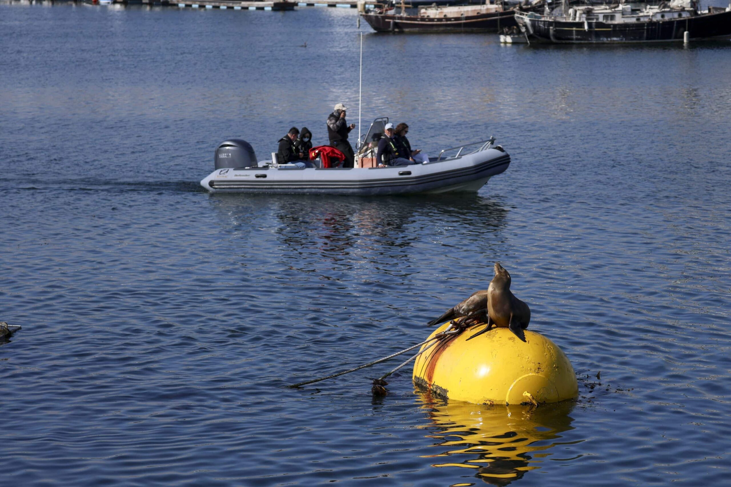 A bit of a swell greeted us as we exited the Mission Bay Channel. Captain Brian pointed out some Nearshore Bottlenose dolphins surfing the swell and foraging for wayward fish between the artificial reefs of the rip rap rocks. Mission Bay was constructed in the late 40’s 50’s and into the 60’s and has over 2,600 acres of waterways and 2000 acres of islands, mainly Vacation and Fiesta Islands.