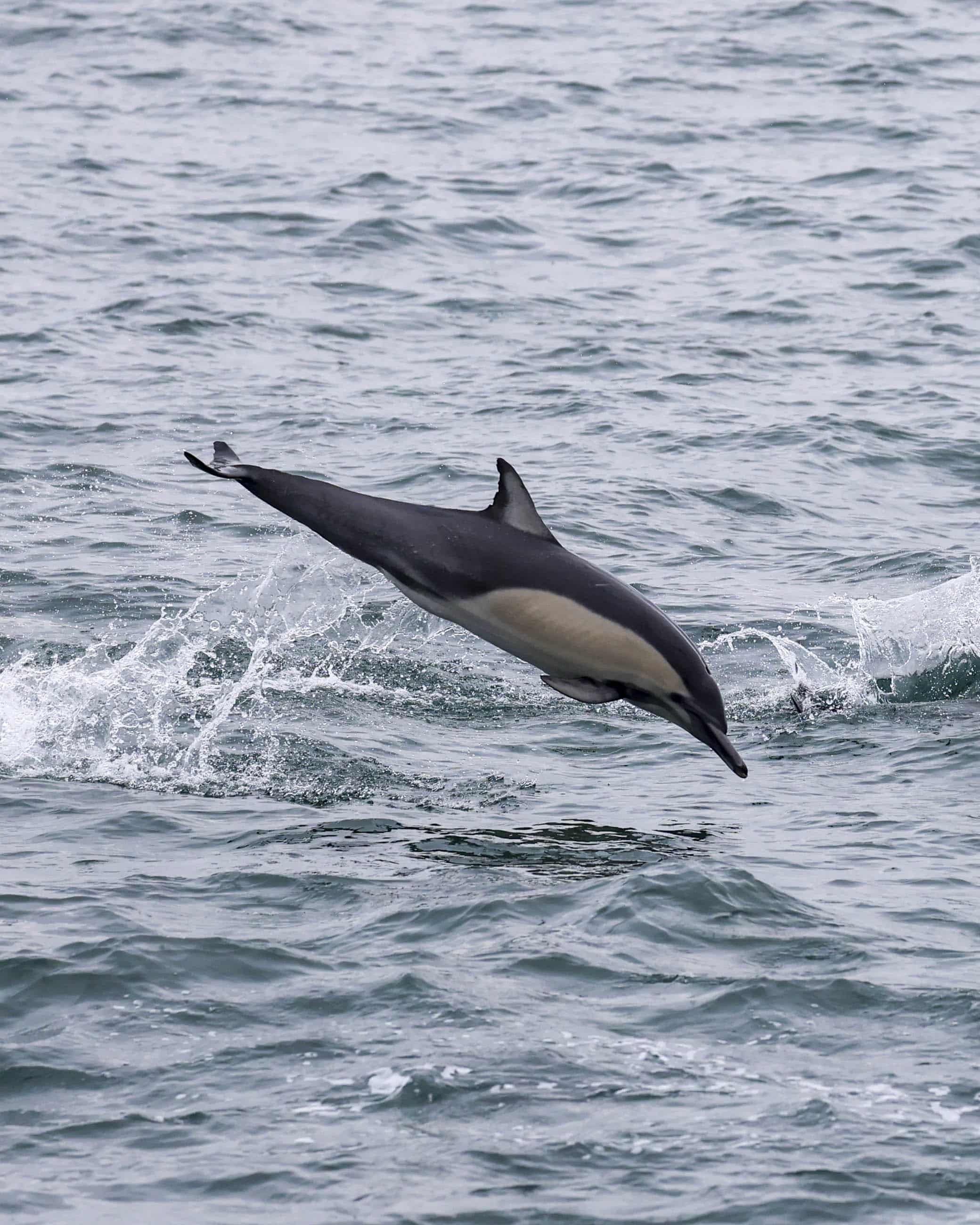 There were so many calves in this pod, I’m sure mommas were showing their youngins how to hunt! 🥰 We continued further offshore to the W/NW, finding more small pockets of long-beaked common dolphins of about 150. The second group was much spunkier than the last, showing off for us with high breaches and leaps out of the water.