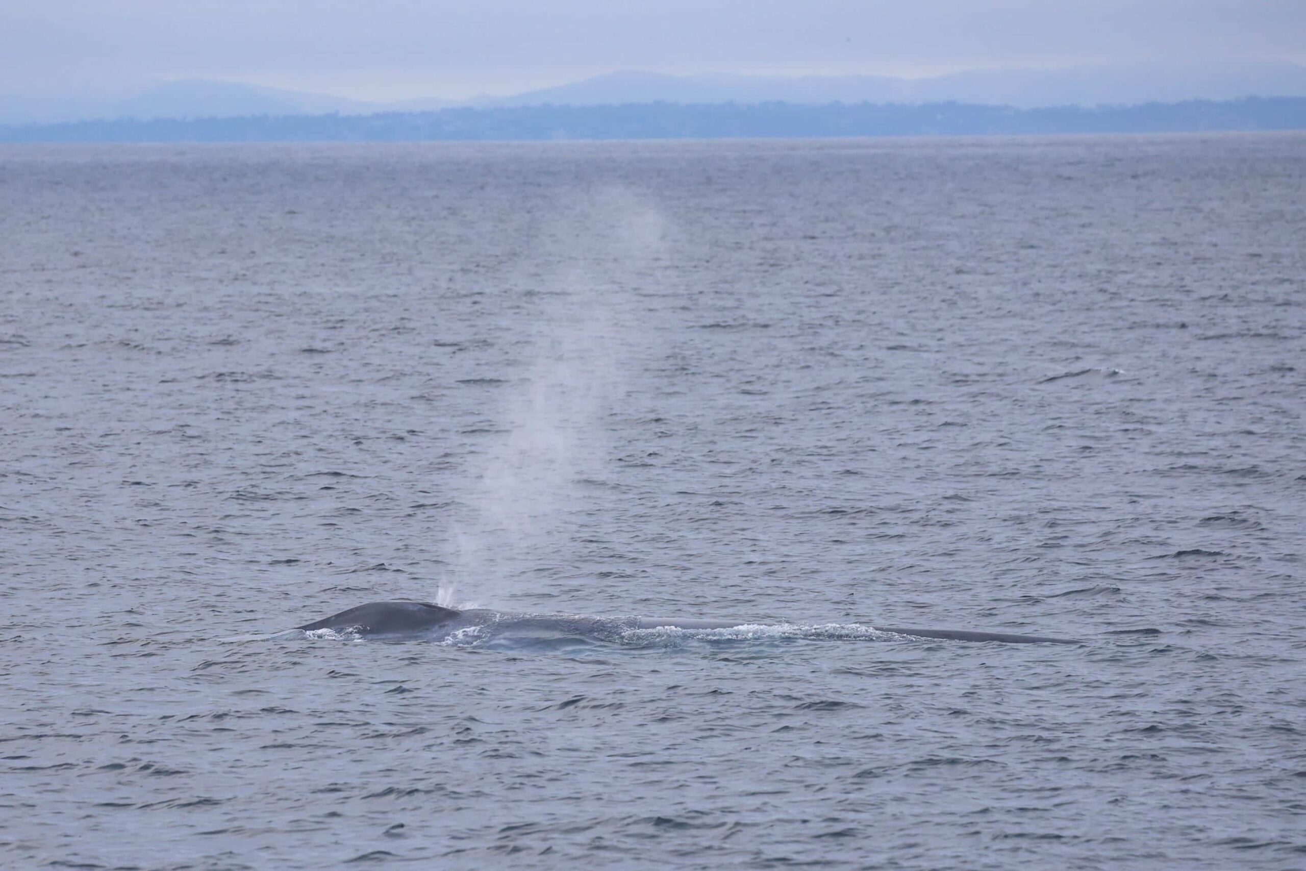 This blue was a full 90 FT and not shy at all, it surfaced close by two times and turned to aim right at us a couple times. We got to turn the engines off and experience maybe the most incredible sound on earth. Blue whales have a 1,400 gallon lung capacity and when they forcefully exhale – the sound is so percussive that the whole atmosphere vibrates. The entire boat goes dead silent, anticipation so taught in the air your could cut it with scissors. And a giant WHOOSH erupting from the blue, followed by a chorus of “AWWEES” from the passengers.