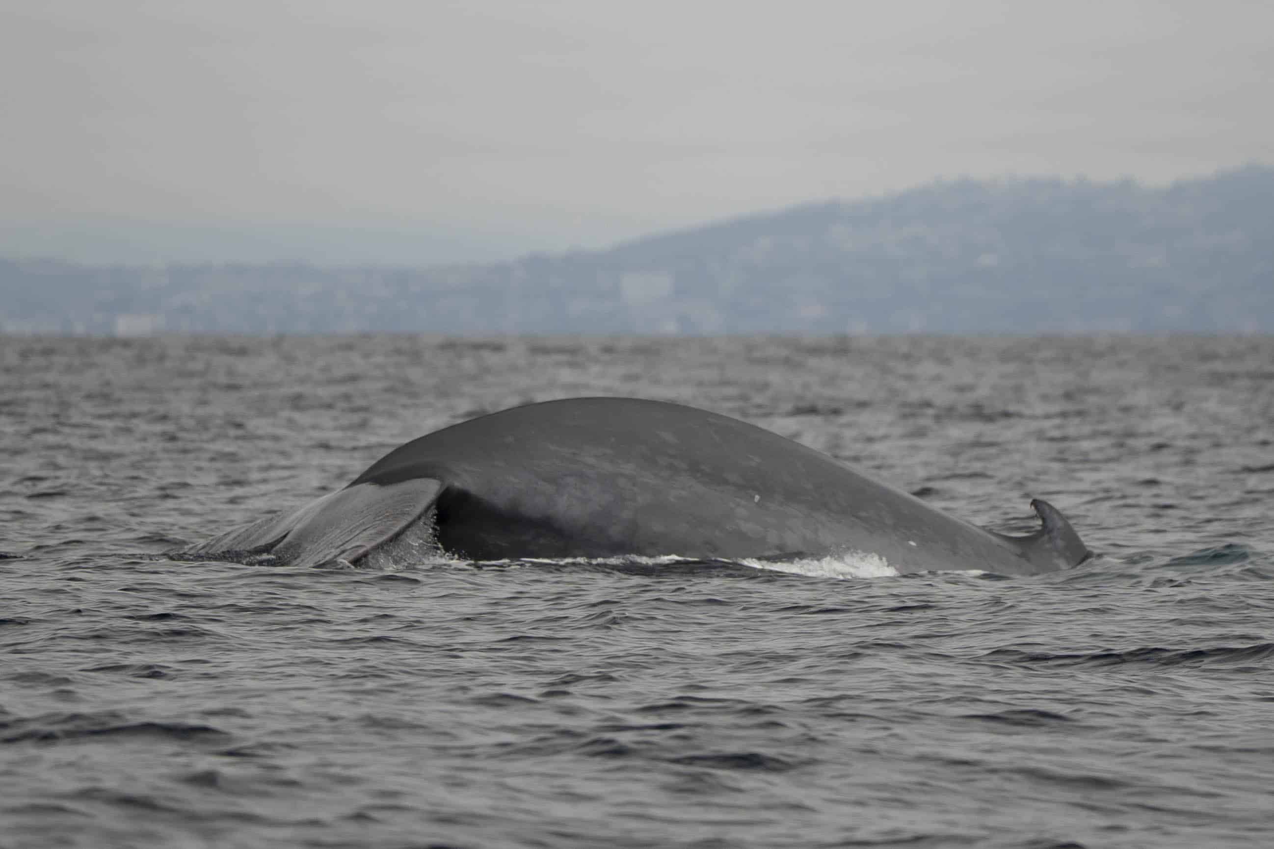 BLUE Monday! Like – the most AMAZING blue whale Monday ever! Bad day NOT to be on the ocean. This year has been slow for blues but this boat full of people was treated an extra rare sighting! We breezed by a feeding pod of long beaked common dolphins, they surfed the wake for a while and went right back to feeding on anchovies. We were on a mission to get out west, another boat gave us intel where to head to see find the largest animal on earth! We got to the spot and were lucky to have a good amount of time to hang out with this VERY thick healthy blue whale! It was exhibiting feeding behaviors – surfacing, circling, 11 min dive times and milling in the same area.