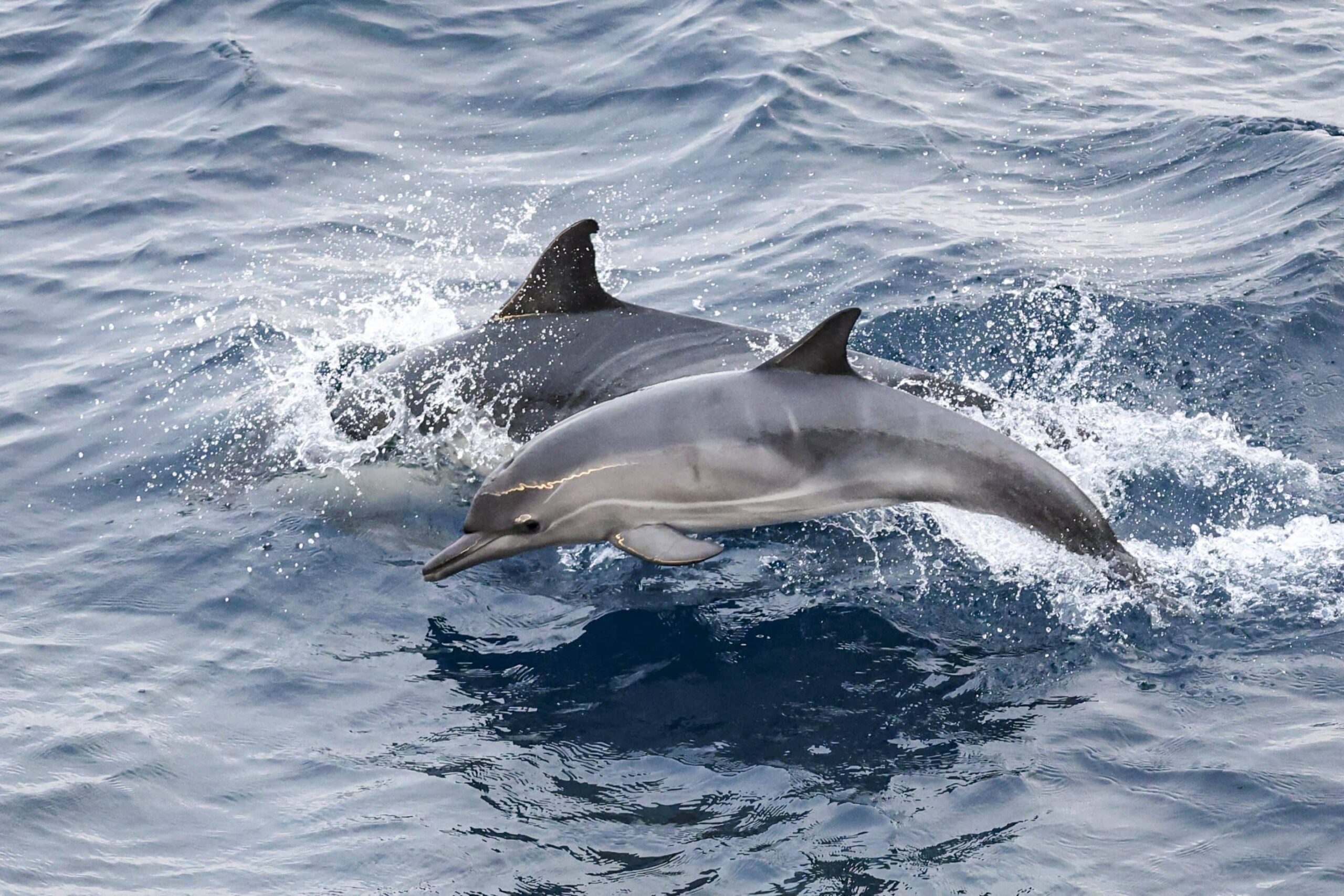 On our second trip of the day we spotted our first pod at about a mile from shore. There were ~50 Long-beaked Commons feeding on more anchovies! We observed a few of the dolphins swimming upside down chasing fish near the surface! On this trip we headed to the SW and once along the drop-off we hung out with a nursery pod of ~50 short-beaked Common dolphins! They were pretty mellow at the start of our encounter but then began to breach and porpoise nearby. We got the best looks as some of little calves did their best to mimic moms breaching behavior! Everyone excited to see them flying out of the water! We waved goodbye to them and went north. We spotted another larger pod of ~200 Short-beaked Common dolphins milling around, and not going in any one direction. We got great looks as they were jumping out of the water all around our boat. They kept swimming to the west as we began our journey home.