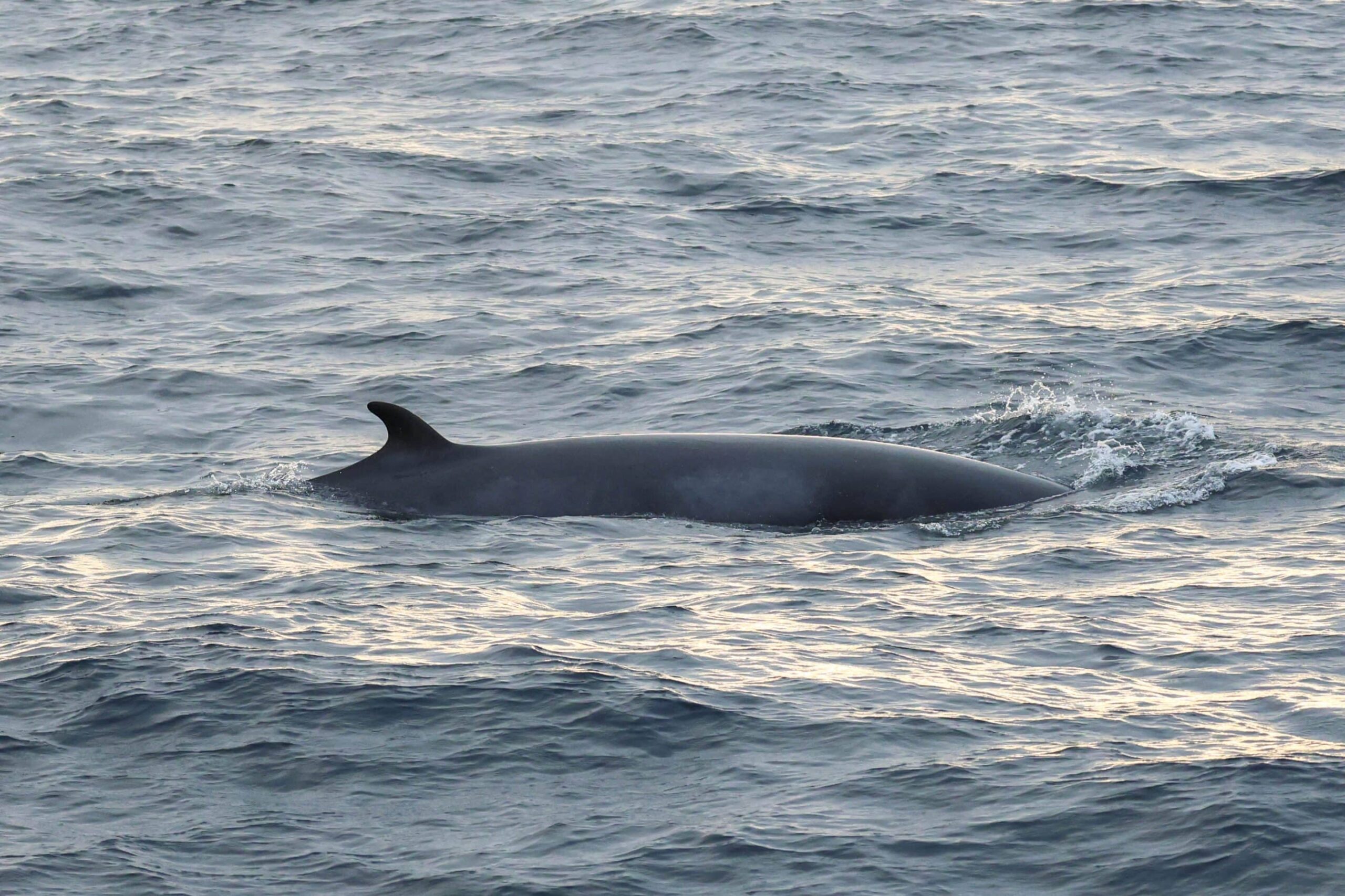 We found about 5 different little feeding frenzies of long-beaked common dolphins, bringing our dolphin total to 400! The highlight of the trip was definitely our minke whale encounter. We got to smell some stinky minke breath (which smells like rotting cabbage…), and got mugged by the minke once. A passenger yelped on the lower deck, I looked down, and all I saw was those cute little minke mittens in the water! The whale surfaced RIGHT at our bow, and we all screamed with excitement. You could see the whale’s entire rostrum, both blowholes, and even a little of the minke chevron pattern they have on their white bellies.
