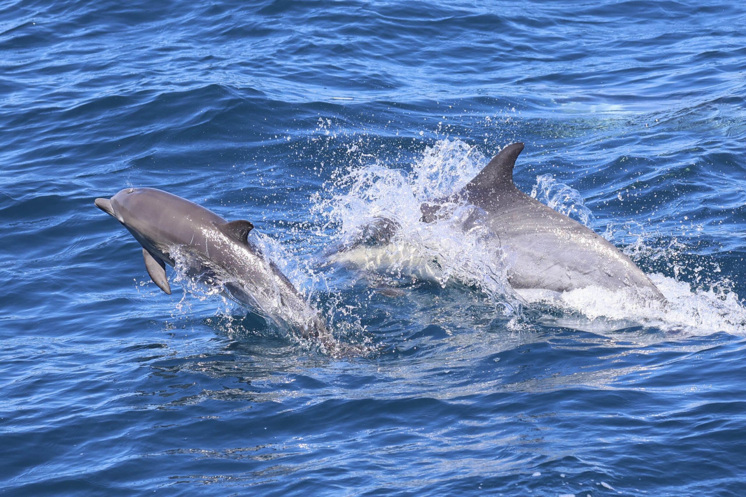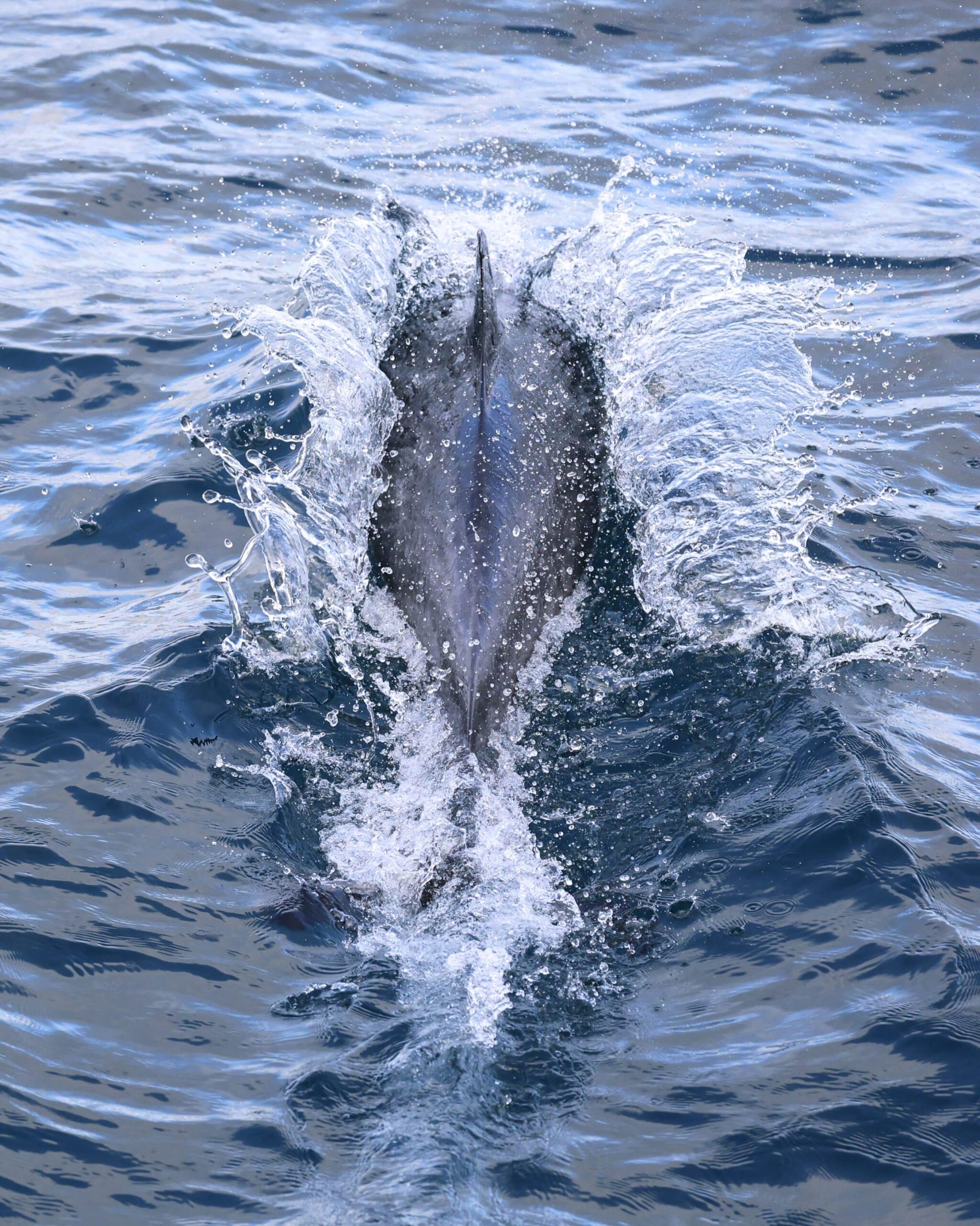Speaking of food, most food for dolphin pods and whales come in food patches. “Patchiness” is an ecological concept describing food in large or small patches, deep or shallow. Each day, our feathered and flippered friends have to look, sometimes for hours, before finding these food patches. This is why we look for “birds gone wild”, which indicates food—in the form of schooling fish such as anchovies—at the surface. Active seabirds attract more birds (they watch each other) and it is likely for us to find mammals such as dolphins, sea lions and whales in that same area.