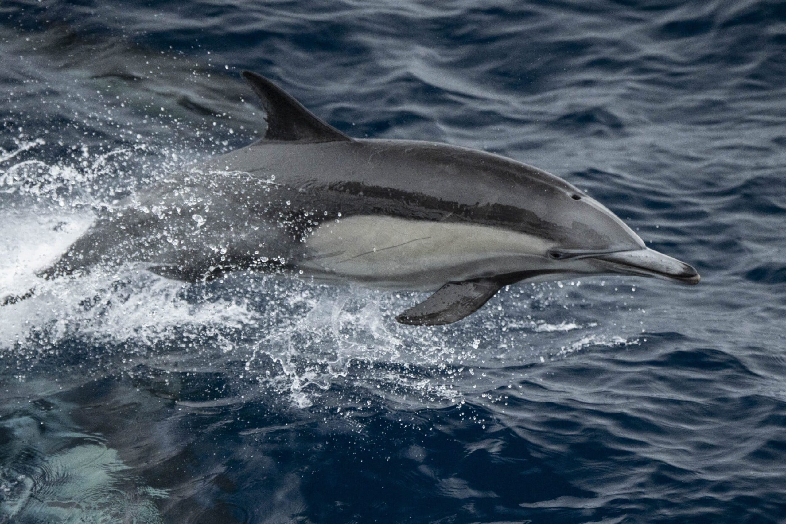 What a WILD end to the day! So many surprises! We headed way off shore and found two pods of common dolphin, both short- beaks and long- beaks spread out over a few miles, they were feeding and getting very playful in the wake! O our way home, it was lookin a bit dreary until we sighted a massive kelp paddy and decided to go check it out, on the way we sighted a 5-6 foot mako shark! It was super brave and let us hang out for a while as it circled the boat! If you look closely, you’ll see the sharks eye, gills and even some teeth! Right when e thought we’d make it back to shore without a large baleen whale – we saw a Grey whale!!! It was pretty dark but we saw a strong spout, a few surface breaths and a nice fluke before turning into the jetties!