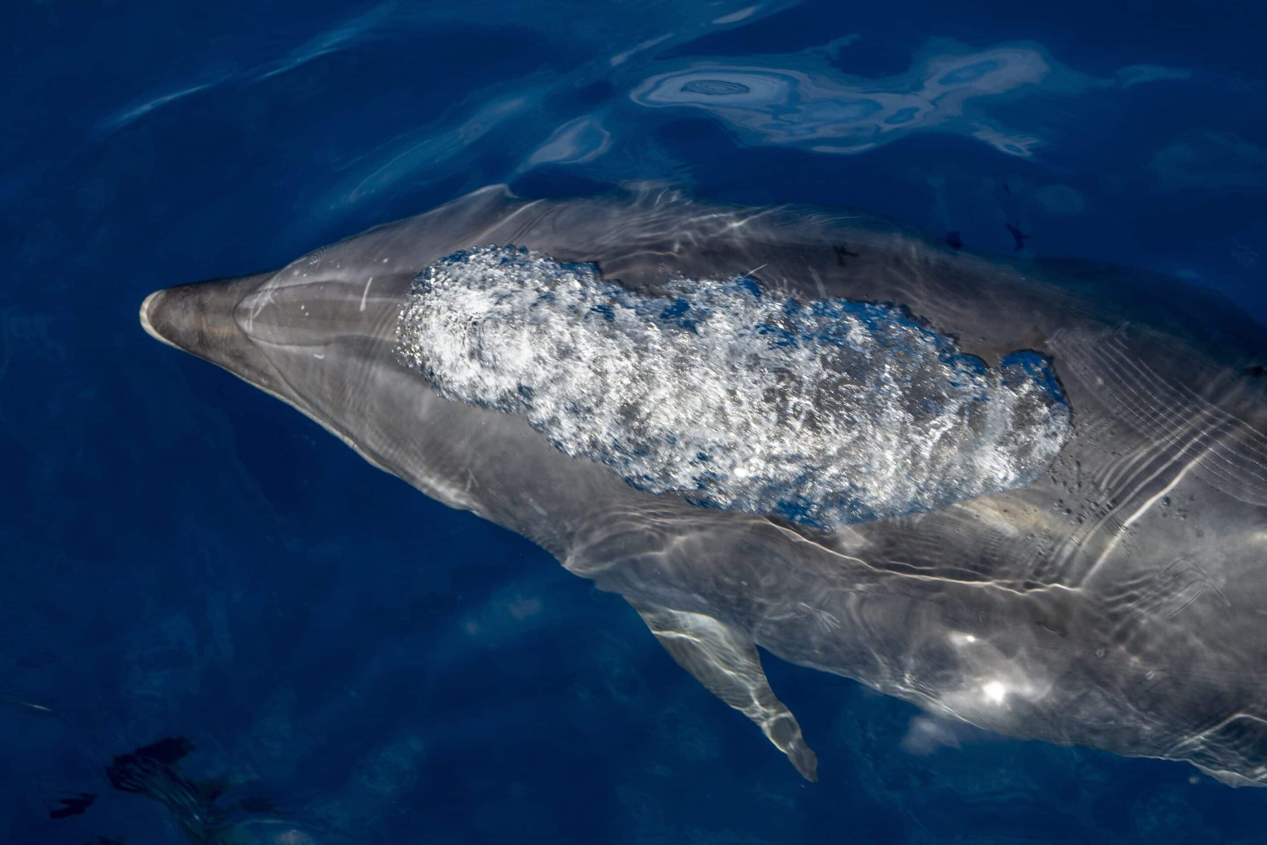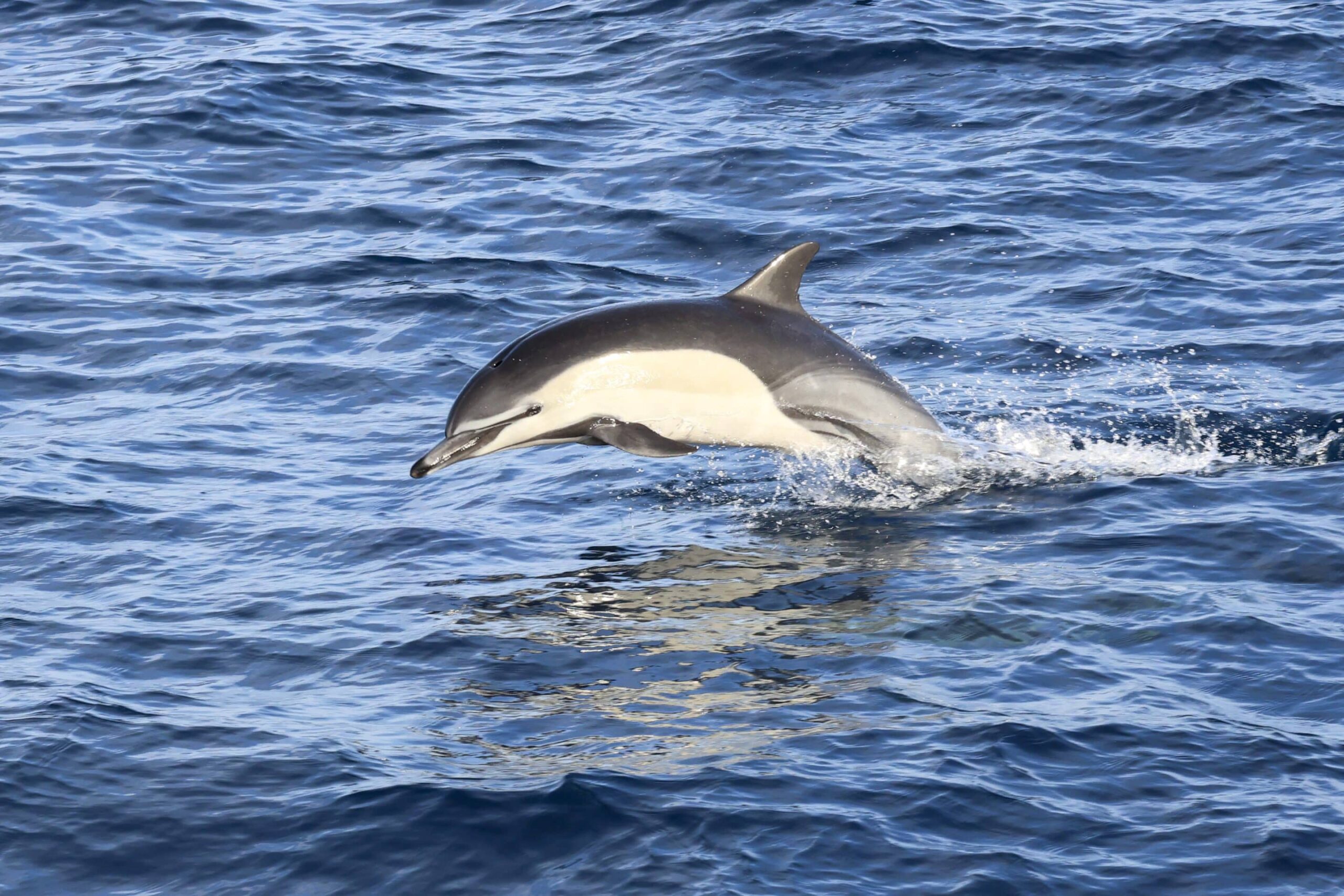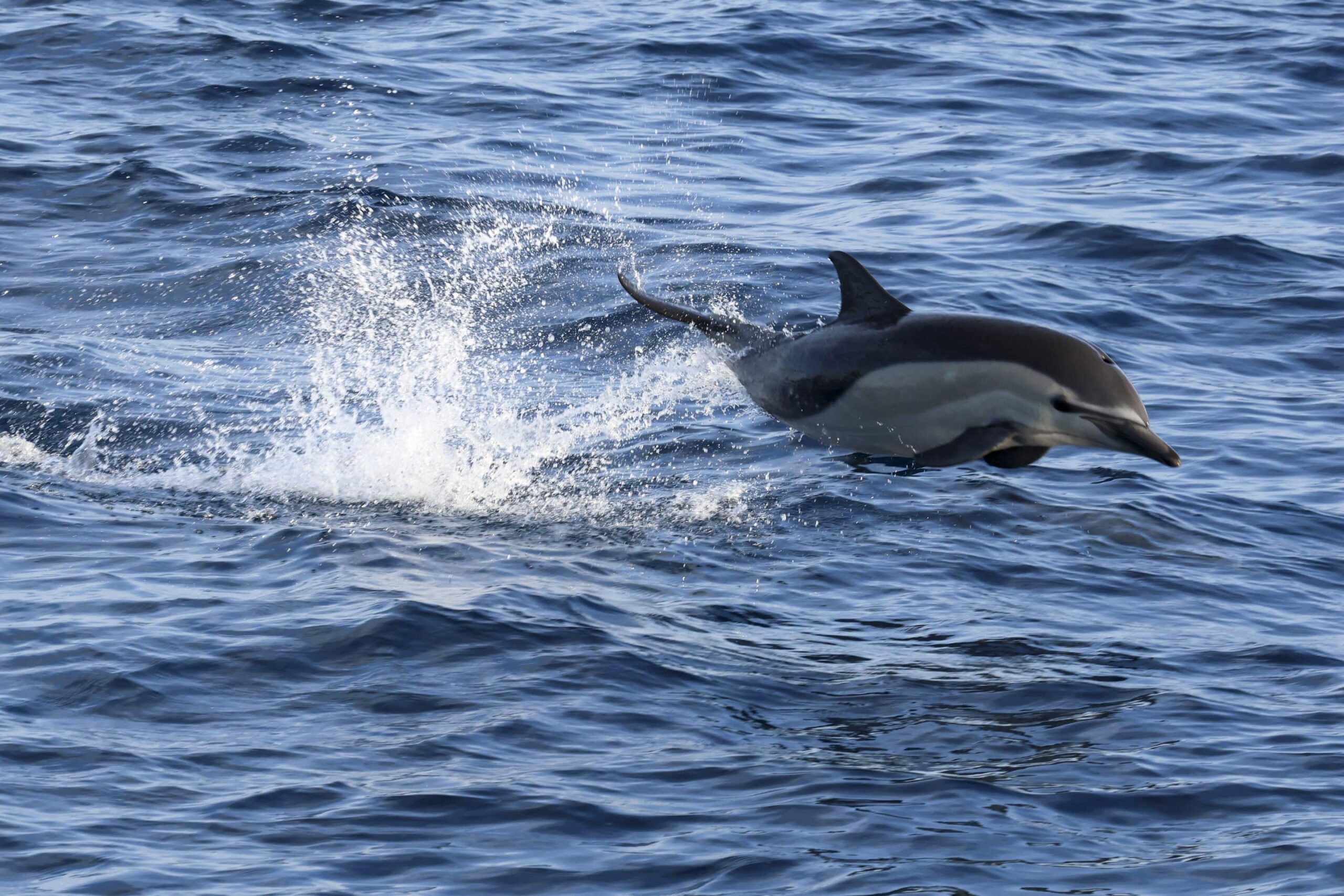 WHAT A TRIP! We had gorgeous sea conditions and amazing visibility! To top that off, we caught up with an amazing pod of over 700 SHORT-BEAKED Common dolphins! We haven’t had a short-beaked Common dolphin pod that large in quite some time! It was amazing to see them socialize while BREACHING and porpoising all around the boat! We found them to the SW just a couple miles from the drop-off. We noticed splashes spread across the HORIZON over a 2-mile spread! They were mostly trending to the NE very slowly. We were lucky to witness some incredible displays of acrobatics from some of the SHOW_OFFS! A couple launched out of the water over 10-ft high, definitely over the horizon! We spotted a few cow/calf pairs zooming around our boat! We ventured to about 9.5-miles from Mission bay and almost touching the 9-mile bank. We hooked it to the north a couple miles and on our turn in, we spotted a breaching Mola, and more Shorties!