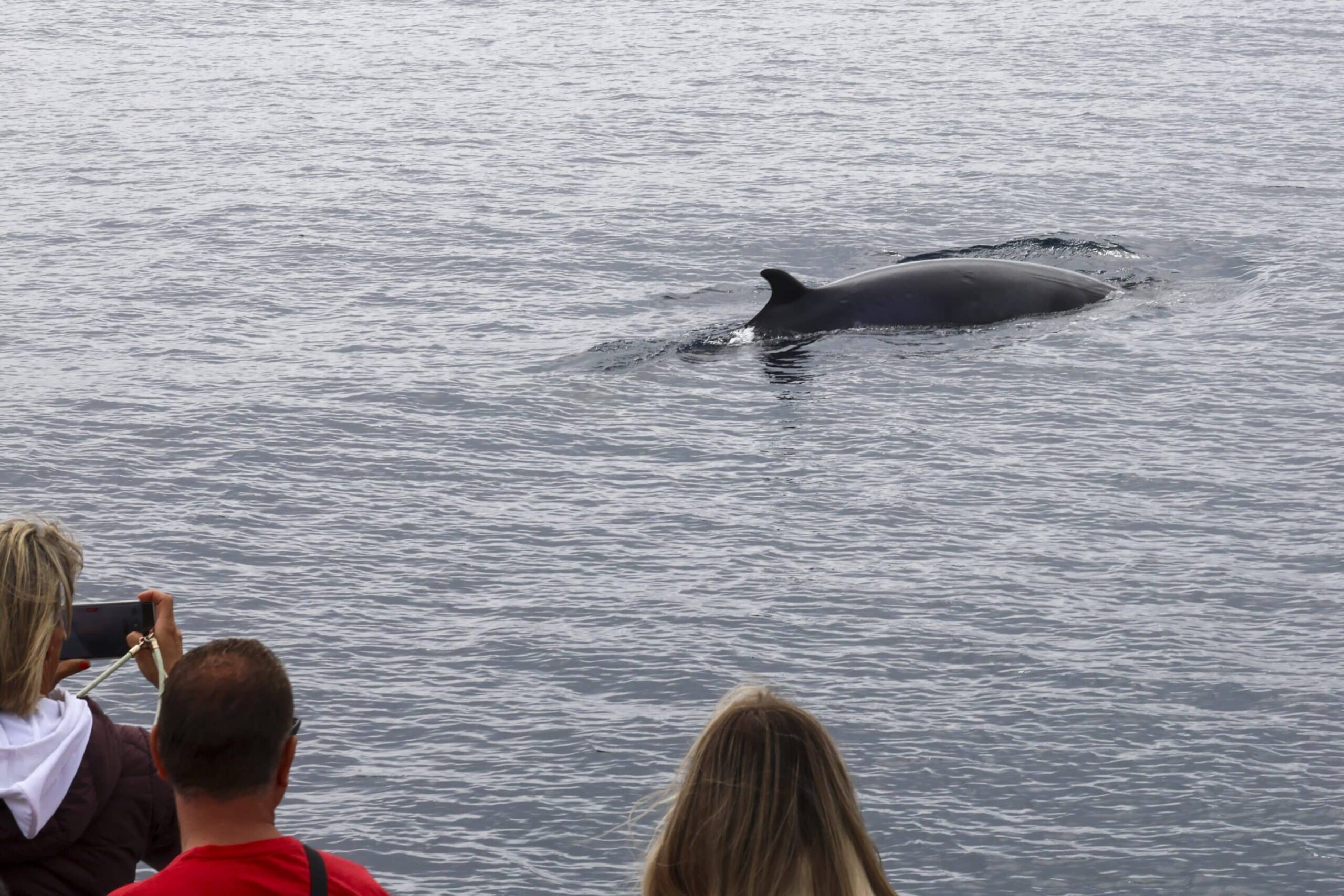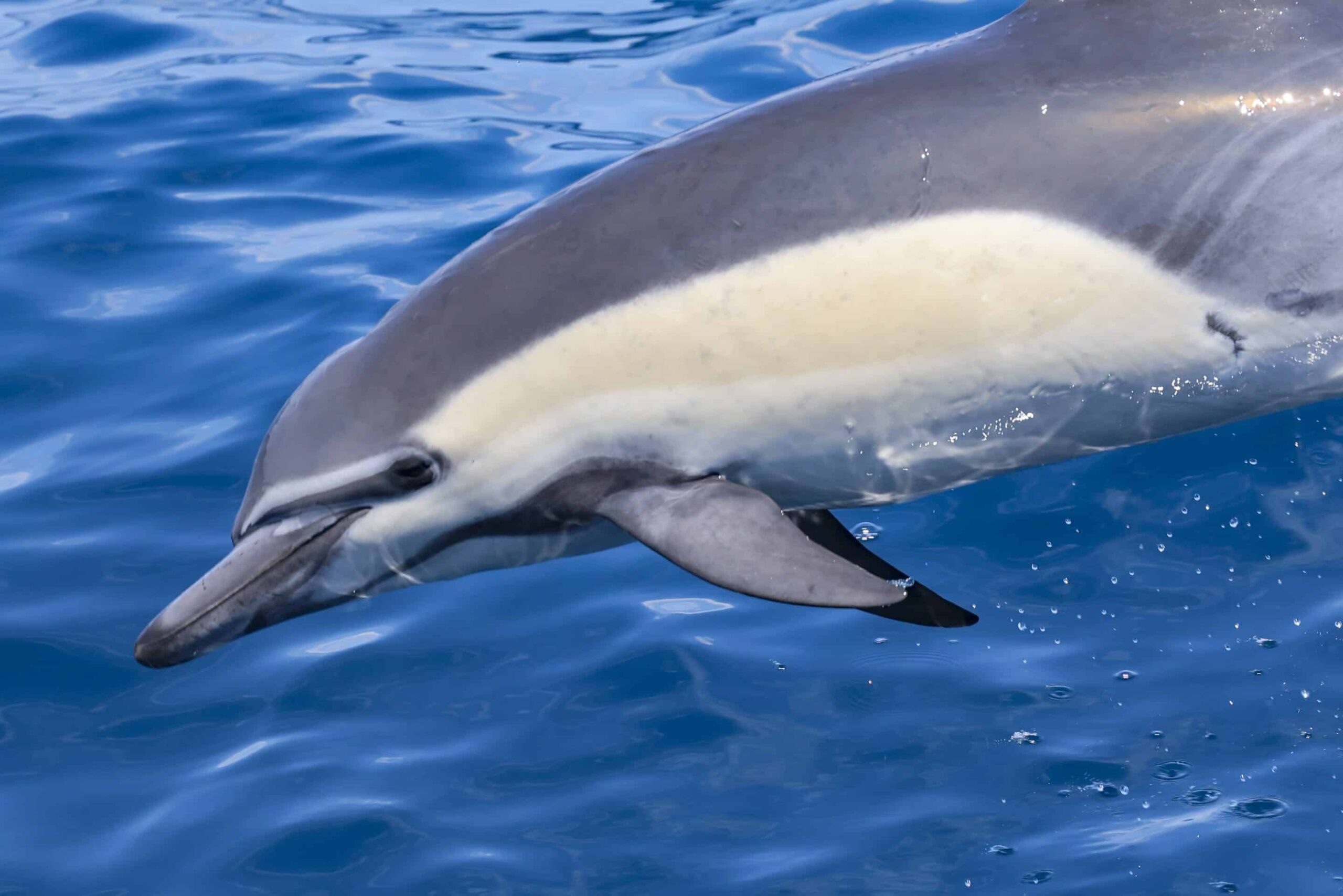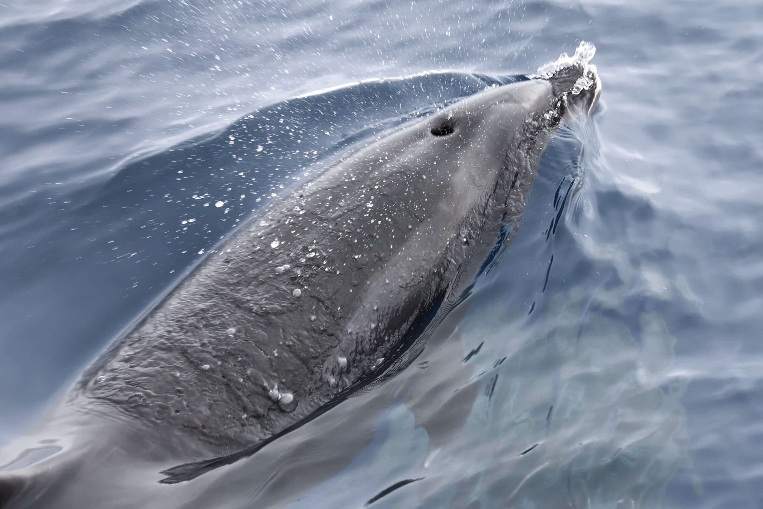 Bottlenose dolphins were found offshore in about 1,100’ of water. We enjoyed their power, strength, graceful movements and curious nature. Captain Bryan found us a Minke whale. It cooperated and seemed intrepid, surfacing many times every 90-seconds or so. A bit unpredictable in where it would show up, but it stayed within a couple hundred meters while feeding, likely on zooplankton deeper down, as we did not see any seabird activity at the surface. Further offshore, over the 9 Mile Bank, another pod of bottlenose dolphins, about 60, with a couple of nursery pods of mothers with babies, known as cow-calf pairs. A couple of bulls were showing off with ritualized courtship displays, high arching porpoises out of the water and bursts of speed unrelated to hunting or foraging.