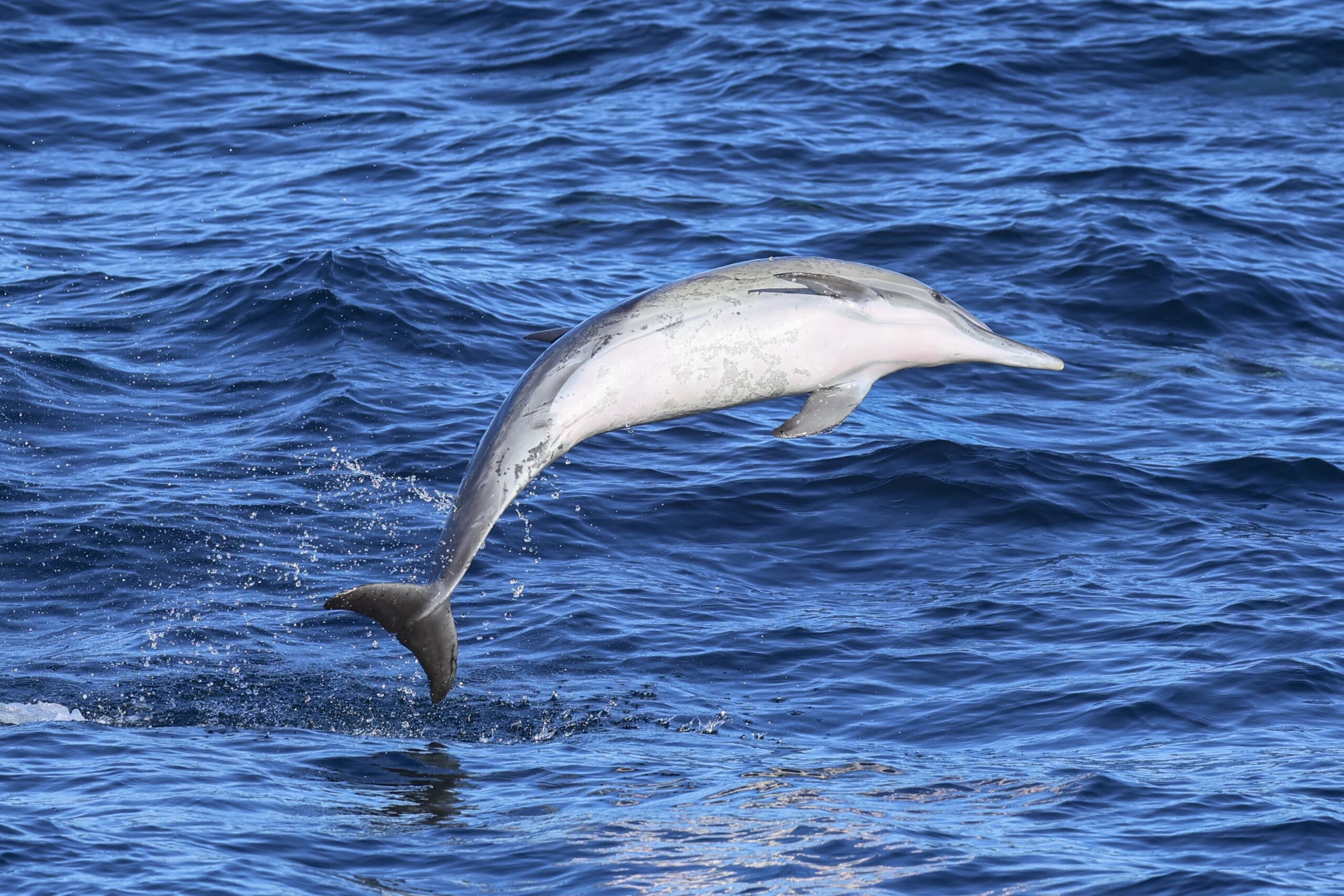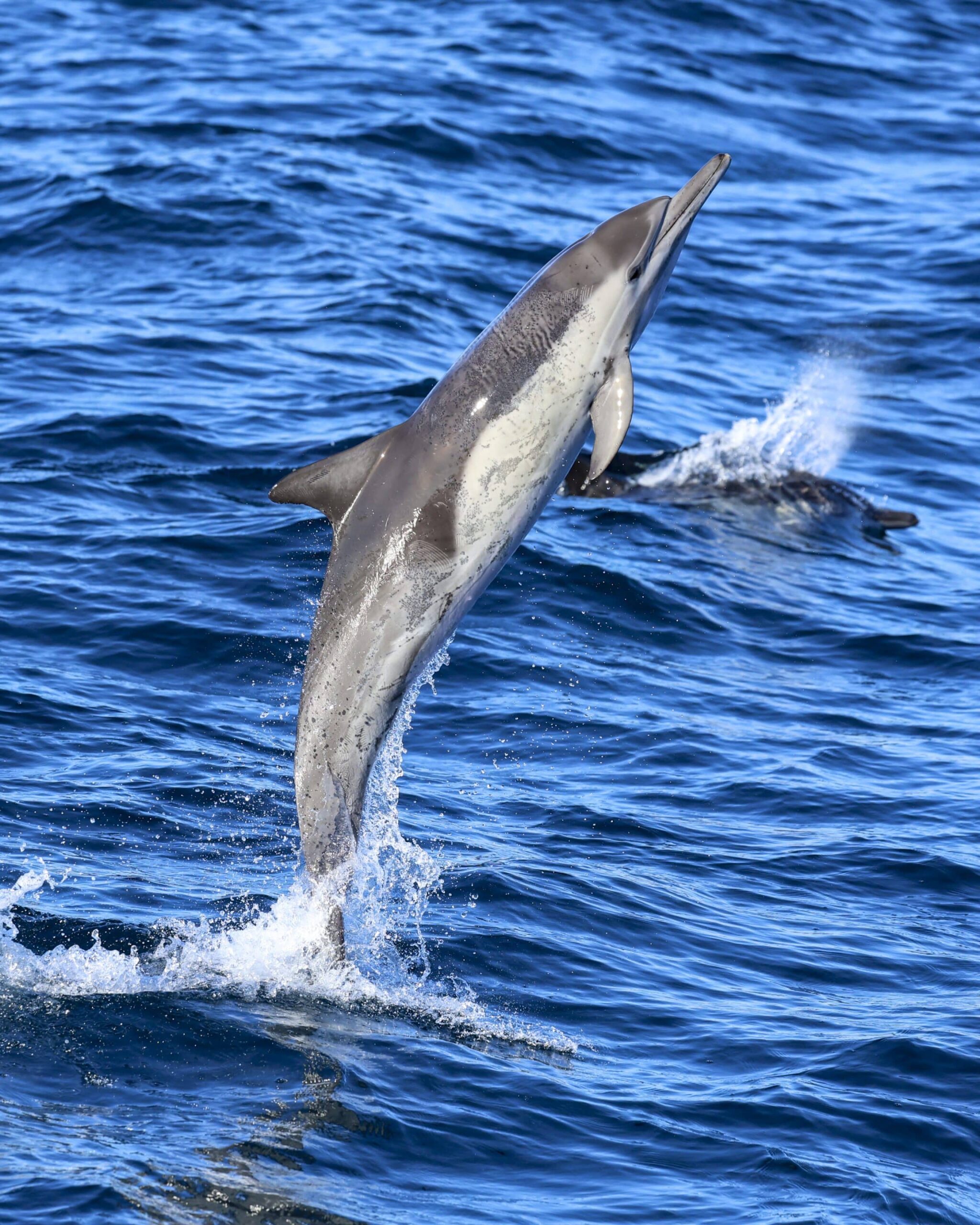 We left Mission bay and headed west and once we got to about 3-miles from shore, we spotted a fast-moving pod of ~100 Long-beaked Common dolphins! They were cruising up to our boat to surf our wake and ride the bow! One of them was showing off by breaching over and over! All of sudden they left our boat and STAMPEDED toward the coast! Passengers were squealing with excitement! We continued further out and spotted another fun pod of ~200 Long-beaked Common dolphins that were headed north along the drop-off. We spotted tiny calves all around the boat. We enjoyed watching the dolphins surround our boat! We spotted more splashes to the west and found a huge pod of ~200 short-beaked common dolphins! They were traveling to the south. They were very spread out and could see them all the way to the horizon! We were just about to turn around when Captain John spotted a Minke whale in front of our boat! It surfaced a couple times and it was headed west. It switched sides of the boat and likely went under our boat to do so. Then it popped up beside us at our stern! Then we went all neutral and it surfaced again beside us, MUGGING us! It was amazing the whole boat screamed! Then we saw a spout to the west of us and then a couple min later we noticed it was second Minke whale! The sunset was beautiful! We even got a hint of a Green flash!