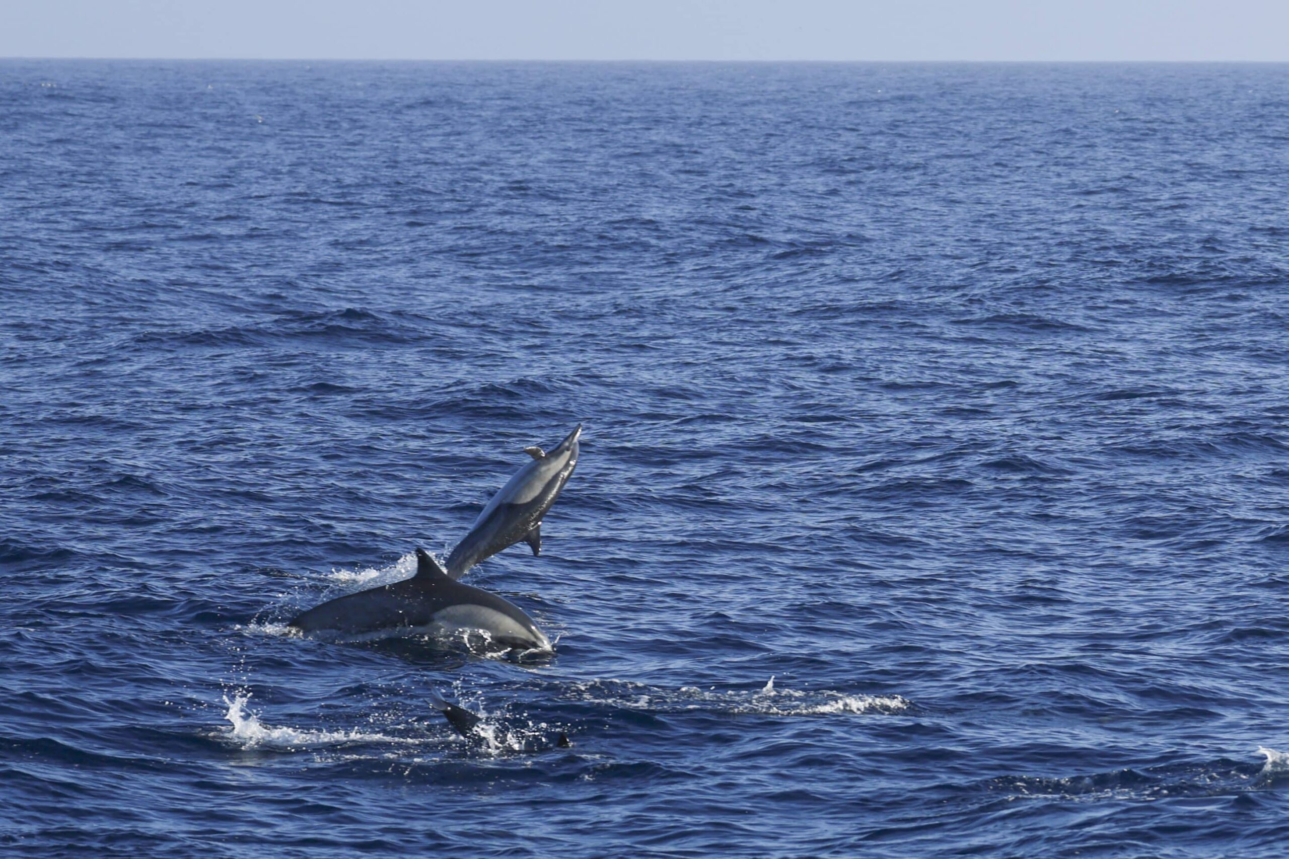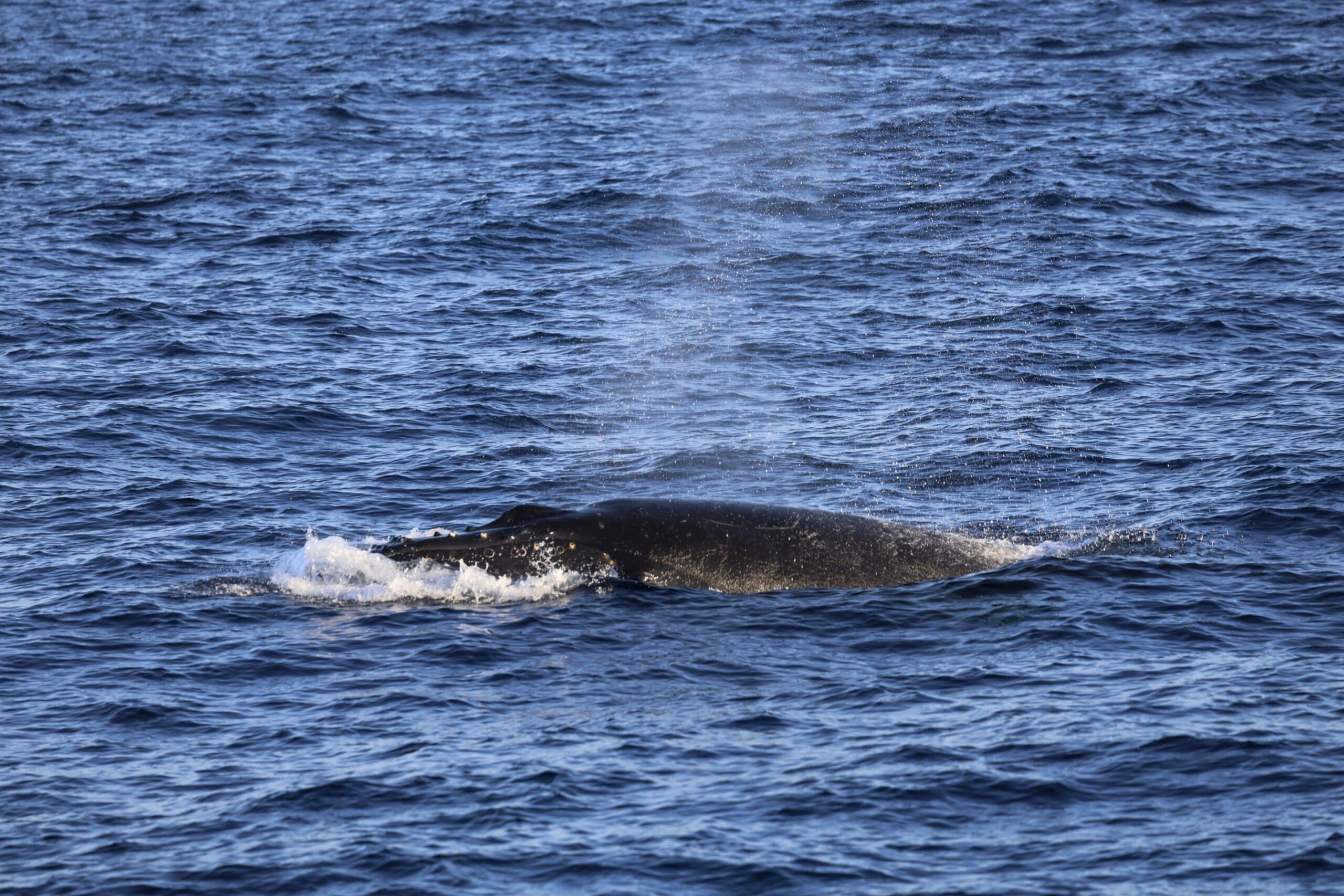Ten miles offshore, over the Coronado Escarpment known as “Nine Mile Bank”, we came across 40–50 Offshore Bottlenose dolphins foraging and playing with the waves produced by our boat the motor vessel Inspiration. This includes our wake and the pressure wave generated off of our bow. We witnessed, for me at least, the greatest leap and breach of a bottlenose dolphin of entire summer. The splash was very close by and our passenger guests were oohing and aching the entire time, as more breaches occurred. This could be showmanship, dominance hierarchy, courtship display or likely, just plain fun! The cumulus clouds were spectacular, it almost looked like they were going to turn into cumulo-nimbus or storm clouds, but that is not in the forecast.