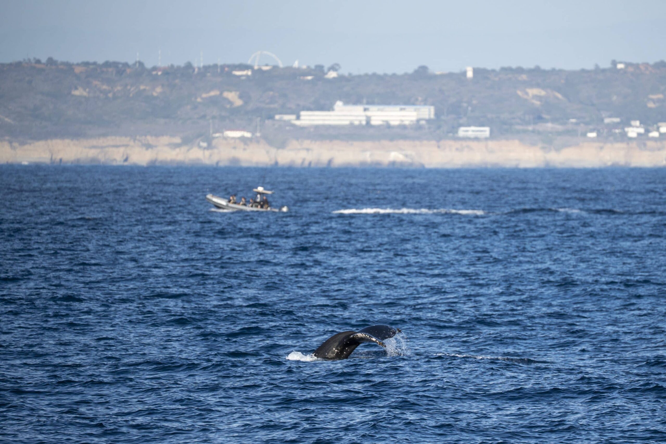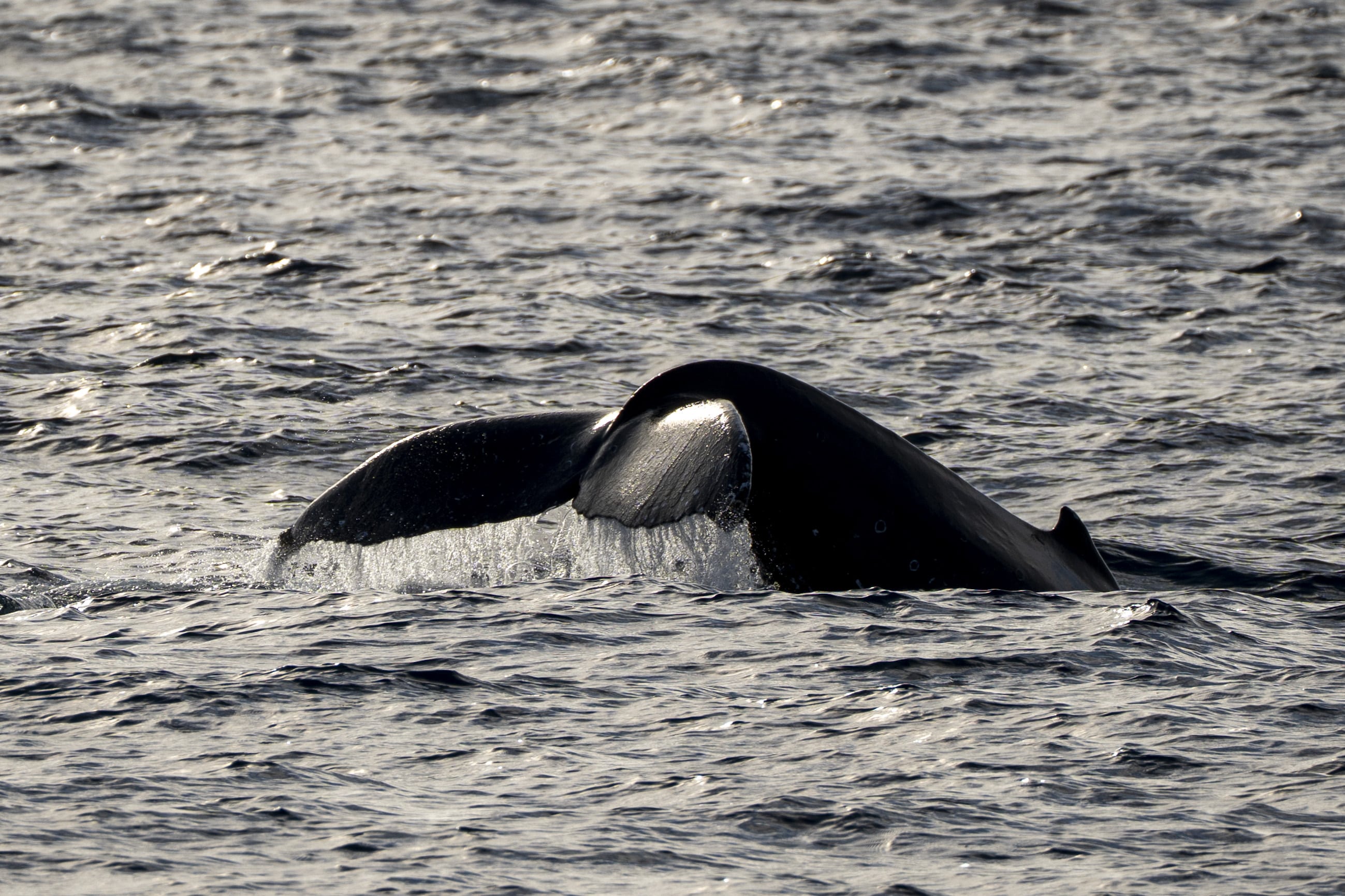 What a DIFFERENT ocean! Everything you could dream of seeing on a whale watch, we got and MORE! Whales YES plural and hundreds of dolphins everywhere we looked! We got word early that there was a feeding frenzy just a bit south west of the jetties. When we got on scene, there were probably 400 long beaked common dolphins feeding on bait fish with THOUSANDS of birds swarming in the sky and diving to feed on the same fish, just beyong this ENORMOUS biomass was a humpback whale! This humpback was super surface active and stayed up giving us great looks at its fluke! We watched as it followed to dolphins for a time, then it split off on its own, chilled for a bit and began a charge back in the direction of the dolphins! When we caught up with the dolphins, there was also a minke whale near by! TWO species of whales, hundreds of dolphins, sea lions all feeding together in harmony and a stunner of a sunset! A full 360 view of insane clouds and sun rays lighting up the sky!