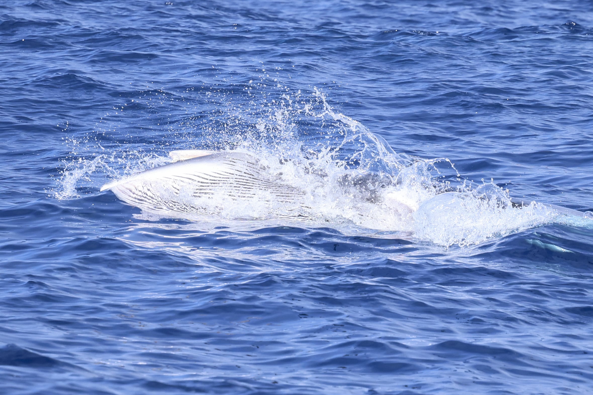 To start the day, we cruised out to the west and noticed thousands of birds diving! We got to the scene and spotted splashes from hundreds of dolphins! They zoomed around and were actively feeding! We were stoked to see a Minke whale that passenger noticed beside us. Before we realized it, there were two more hanging out in close range and then a fourth stayed on the edge of the madness! We even got to experience why Minkes are called STINKY Minkes, and multiple times at that! One of the Minke turned toward us and dove under our boat getting us the BEST looks! We also got to witness LUNGE FEEDING! The Minke burst up to the surface by turning to its side! We got great looks at its expanded throat pleats! The Common dolphins were super playful and we got to the so many calves!