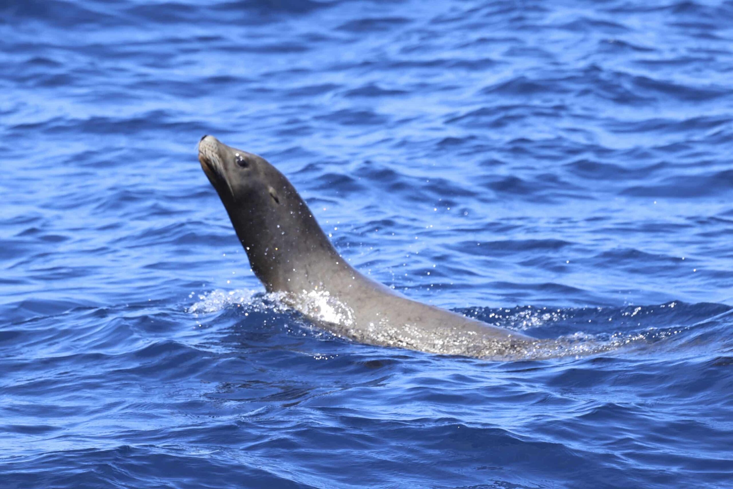 On our afternoon trip, we zoomed up to the NW crossing our fingers for more of the feeding frenzy. We spotted the same bird activity but by the time we got there, they had settled. We were in luck though, as we caught up with at least 600 Long-beaked Common dolphins traveling west. We scanned the area near the La Jolla canyon and turned back in as the dolphins turned to meet us on the drop-off. We were completely surrounded, enjoyed amazing views of them breaching and porpoising!