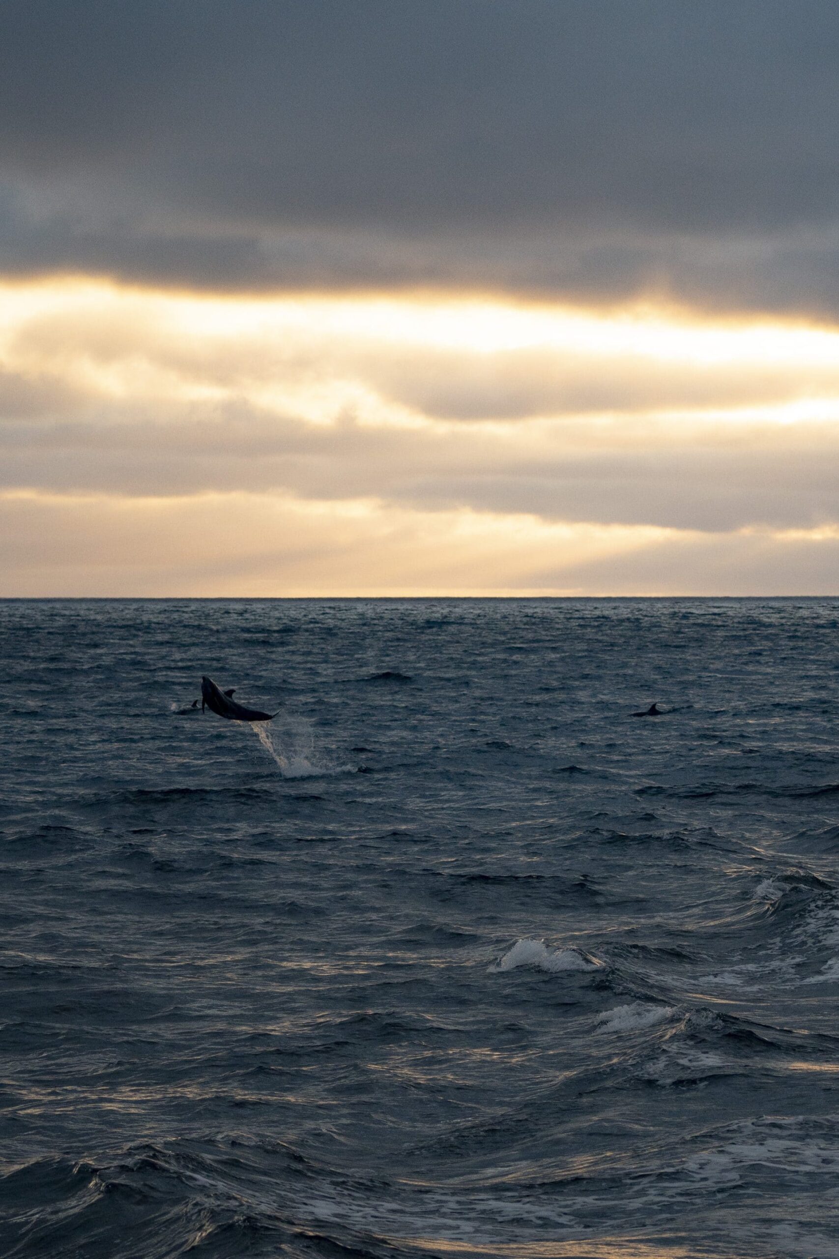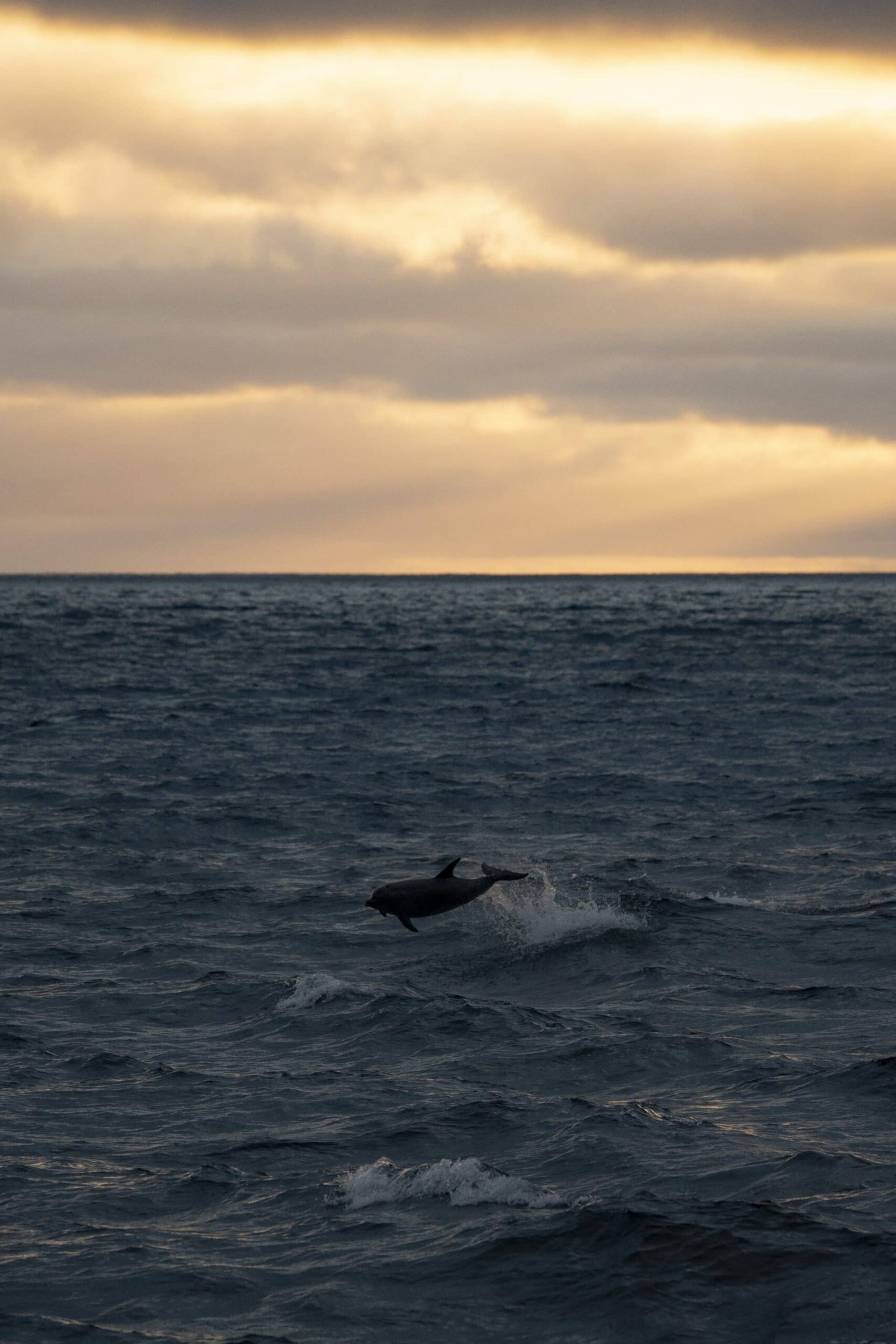 Sunset conditions got even better, swells calmed down and we headed out to the 9. We got WAY out there but found a pod of about 150 bottlenose with an incredibly tenacious baby that had left mom’s side to surf at the bow and in our wake, FASTEST BABY EVER! It was young, still having fetal fold but this little nugget stole the hearts of everyone on board. On our way back, we found a more playful pod that were launching into the air out of the wake as the sun sank low in the sky creating some magical backlighting!