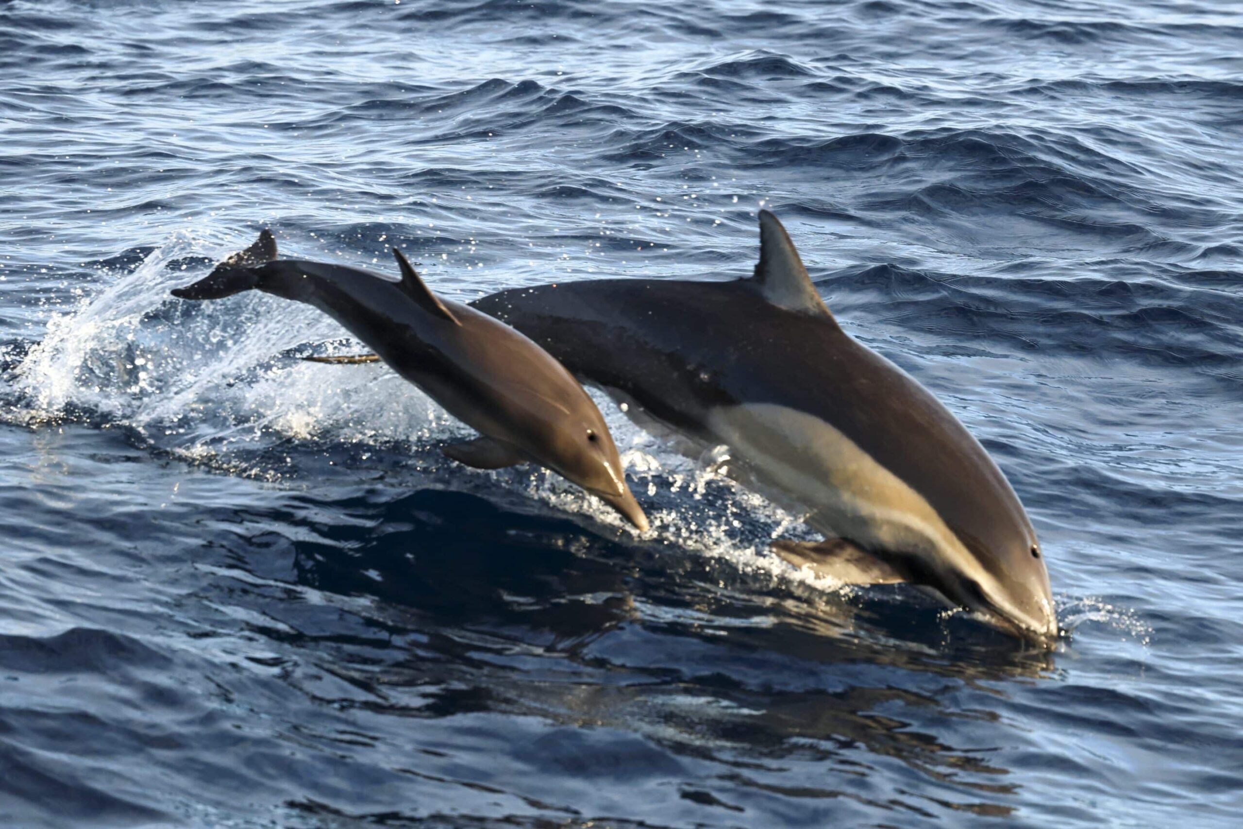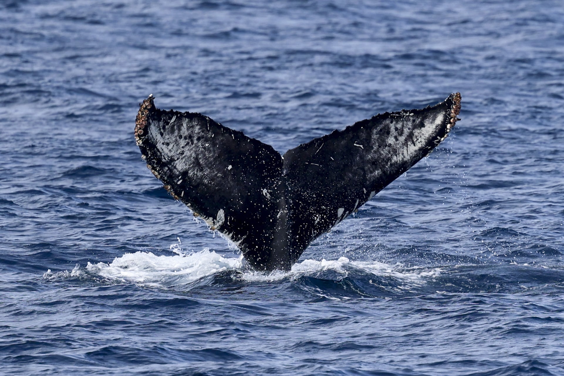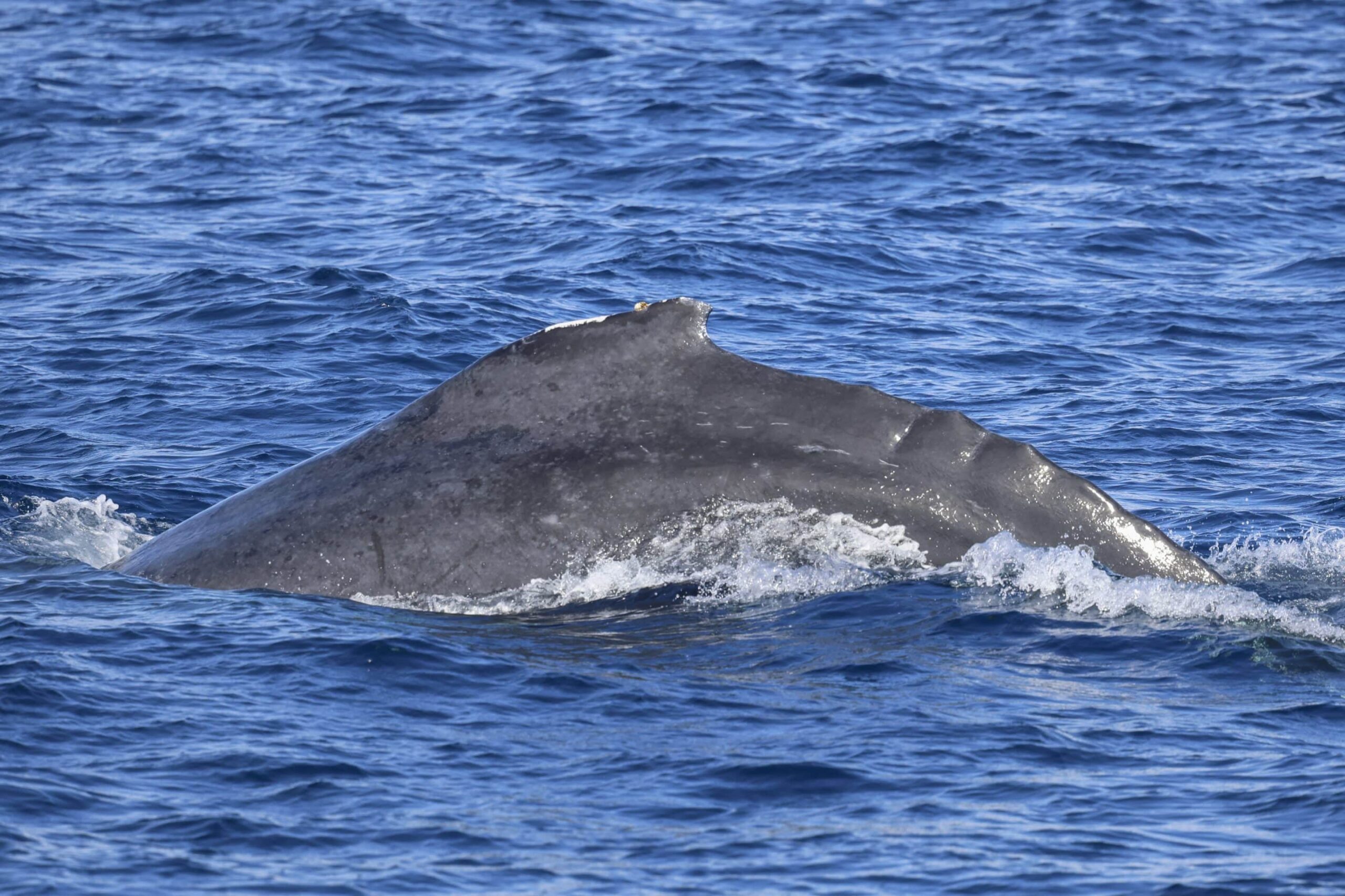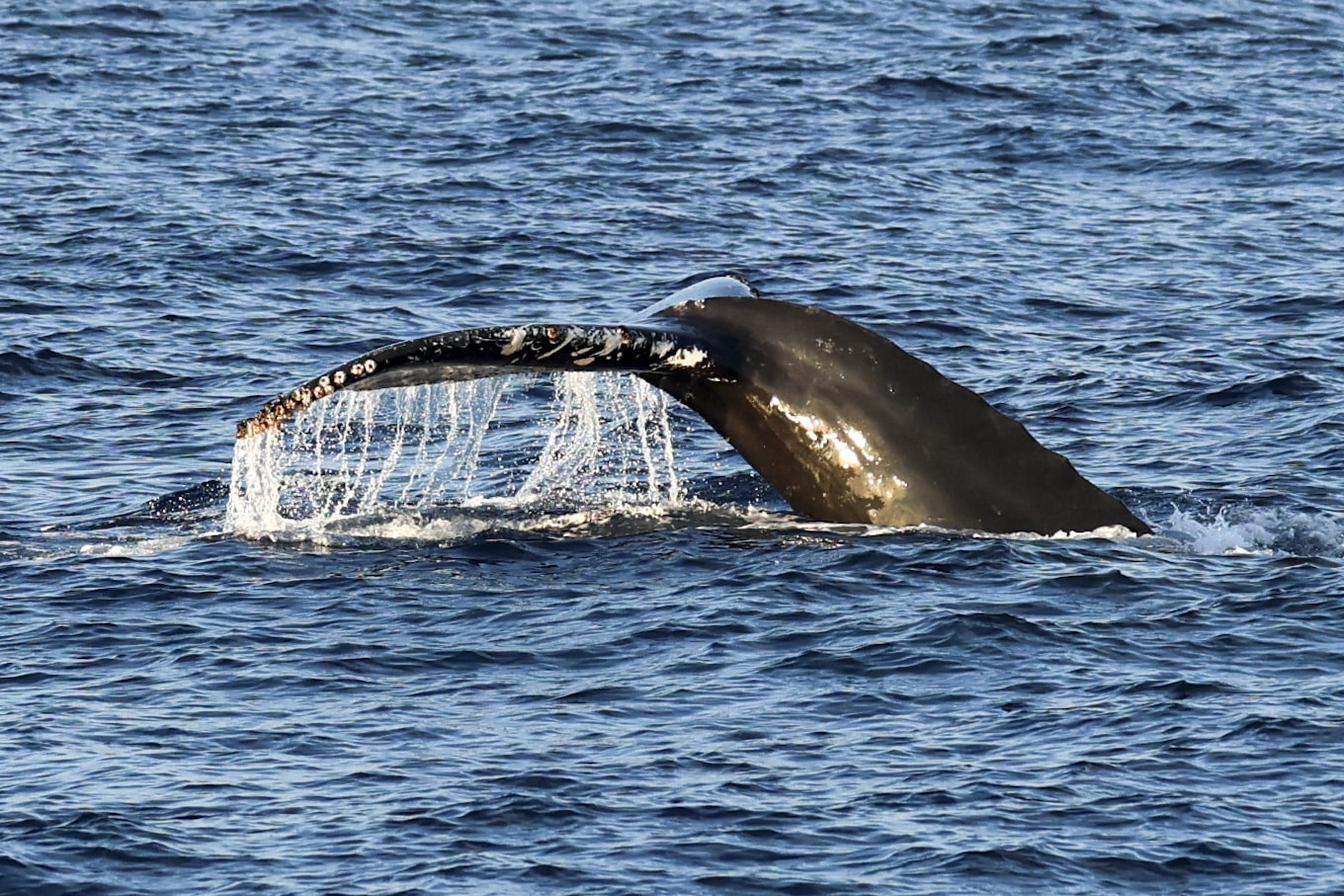 To start our day, we cruised up to the NW and found ourselves in the La Jolla Canyon! That’s where we had an explosion of LIFE! First, we caught up with the two humpback whales that were slowly headed north. They were interestingly not traveling next to each other, but were separated by about 1/4 mile. We hung out with one that gave us great looks at its head, back and gorgeous tail! We noticed some splashes to the north of us and spotted a huge pod of ~500 Long-beaked Common dolphins. The ride home was smooth with great views of the coastline. We had a surprise visit from a pod of ~5-7 Offshore bottlenose dolphins and ~30 Short-beaked Common dolphins!