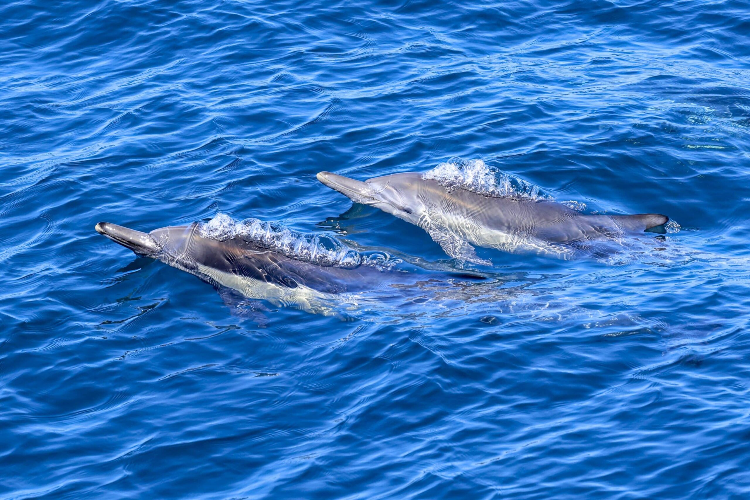 A spectacular Fall afternoon on Mission Bay and in the near coastal environment in what is known as the Eastern Tropical Pacific Ocean. Here in Southern California, from San Diego to Hawaii to Costa Rica is mostly sub-tropical in terms of water temperature and biological activity. We experienced a bit of a bounce today on the M/V Privateer as we entered and exited the Mission Bay Channel entrance and into the mighty Pacific. We went 8-miles offshore to where the waters are deeper and there is more upwelling of nutrients that fuel the food web. We found three pods of dolphins, the first pod was a densely packed group of long-beached common dolphins. Our second pod was the more boisterous, high-leaping short-beaked common dolphins. It was as much hearing the cheering of our passengers as it was to see the dolphins playing with our vessel, surfing our wake and getting pushed forward by the pressure wave off of our bow, a “free ride” for these small cetaceans. The scenery was outstanding with the gorgeous weather. We have one more trip today, our sunset trip begins at 4:30 PM. Please tell your friends to get out on a boat and see the amazing wildlife. —Biologist Greg McCormack