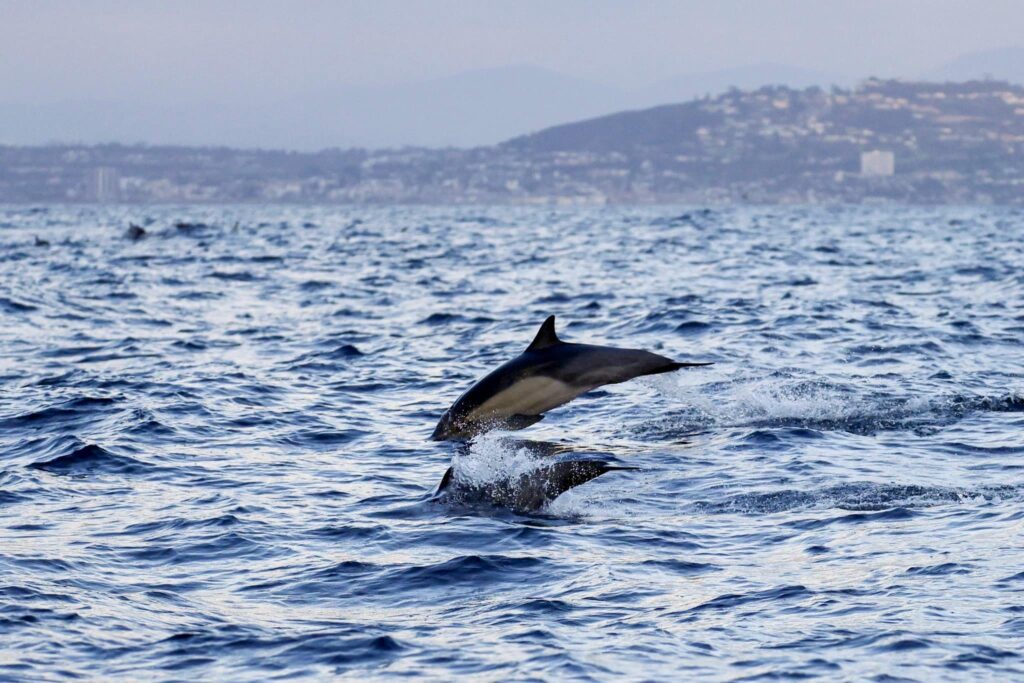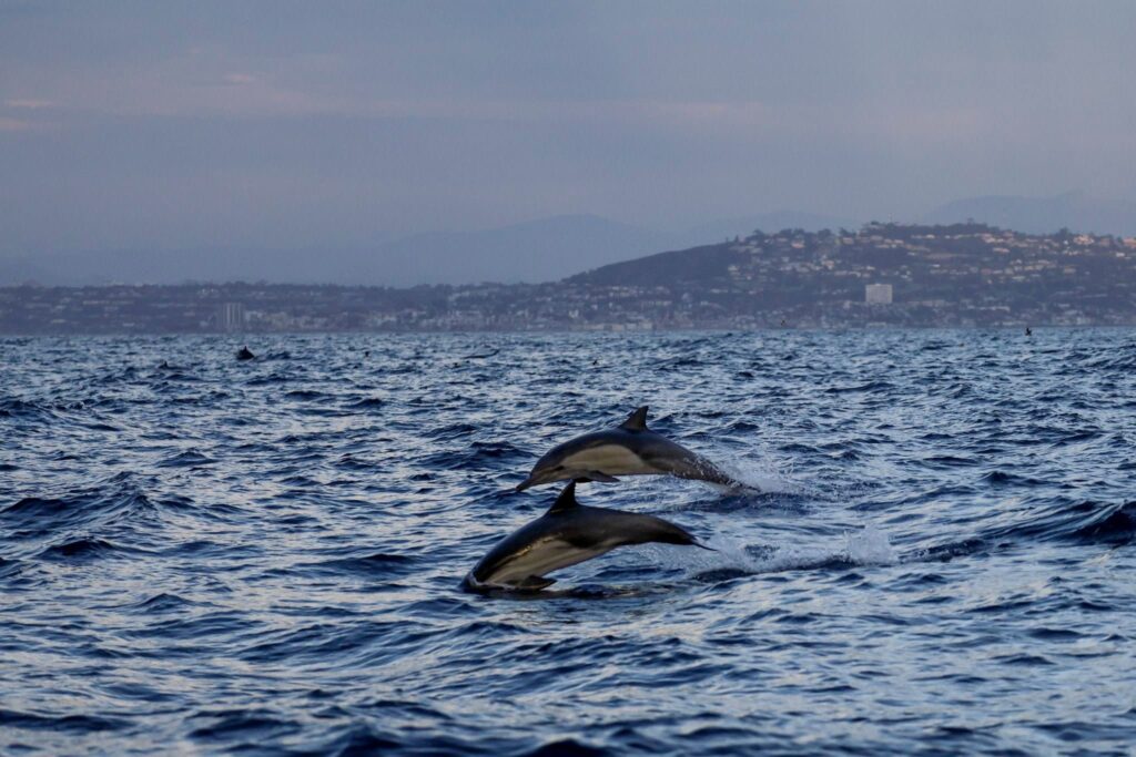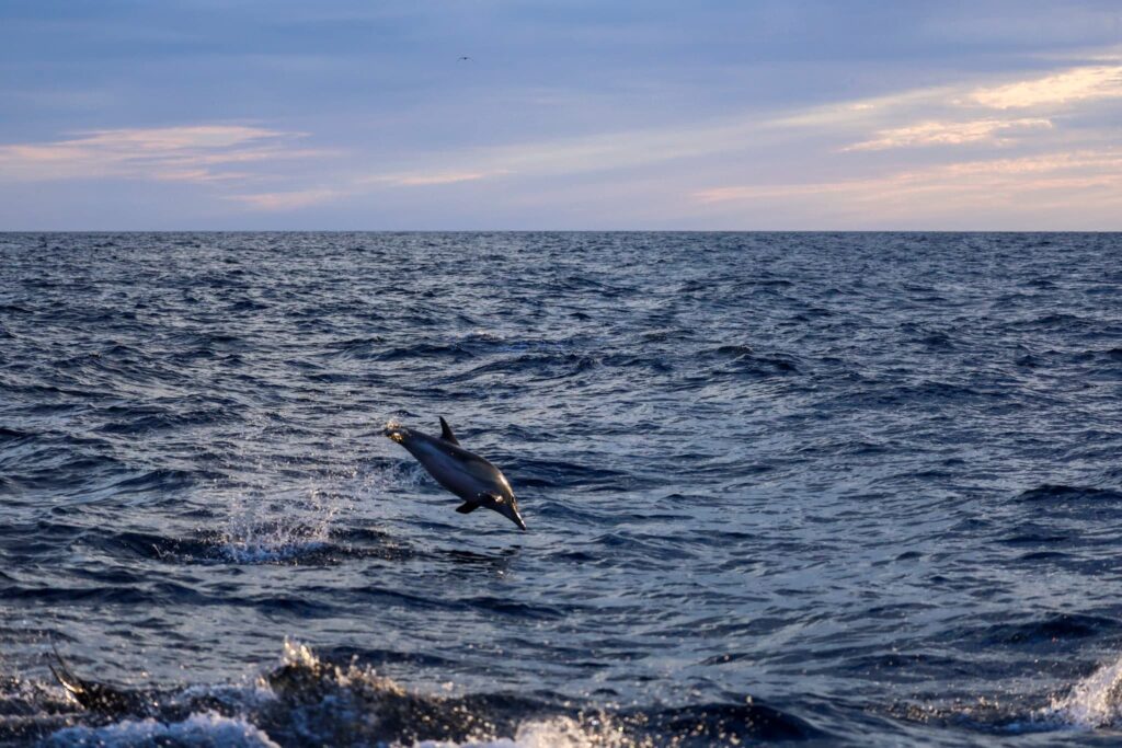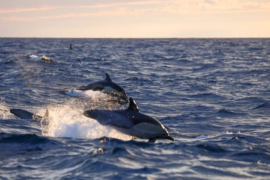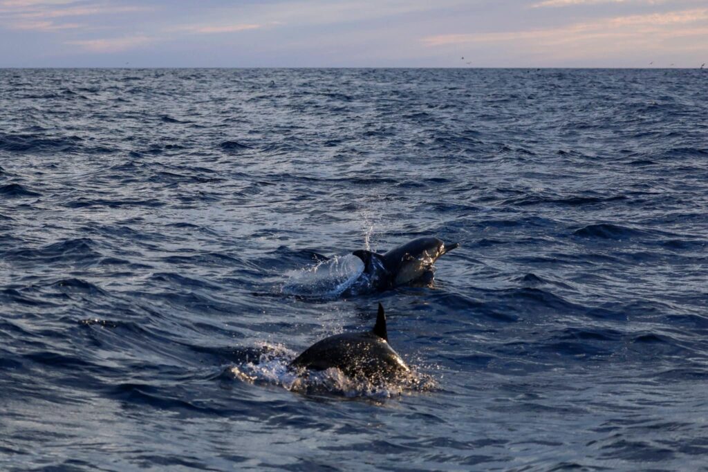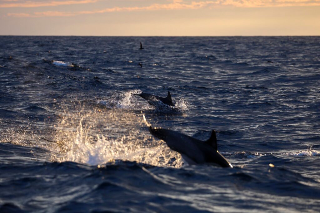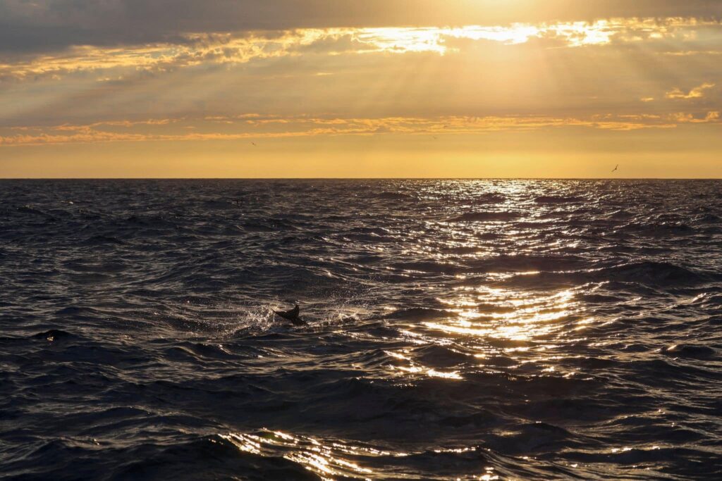 Our sunset adventure very quickly found a humpback whale traveling south super slowly, we realized pretty quickly that it was entangled in some sort of fishing gear, likely a lobster trap, as we could see the floats lingering just sub surface at the whale swam slowly though the ocean. We quickly dialed up Sea World Rescue in hopes to get a disentanglement team on the whale. We gave them the whales heading, speed and last known coordinates, hopefully this whale has a happy ending in its future! After a fair amount of time hanging with the whale, we cruised out to find another HUGE aggregation of dolphins. This, was a feeding frenzy of hundreds of shorties and shearwaters, a promising sign of more whales to come!