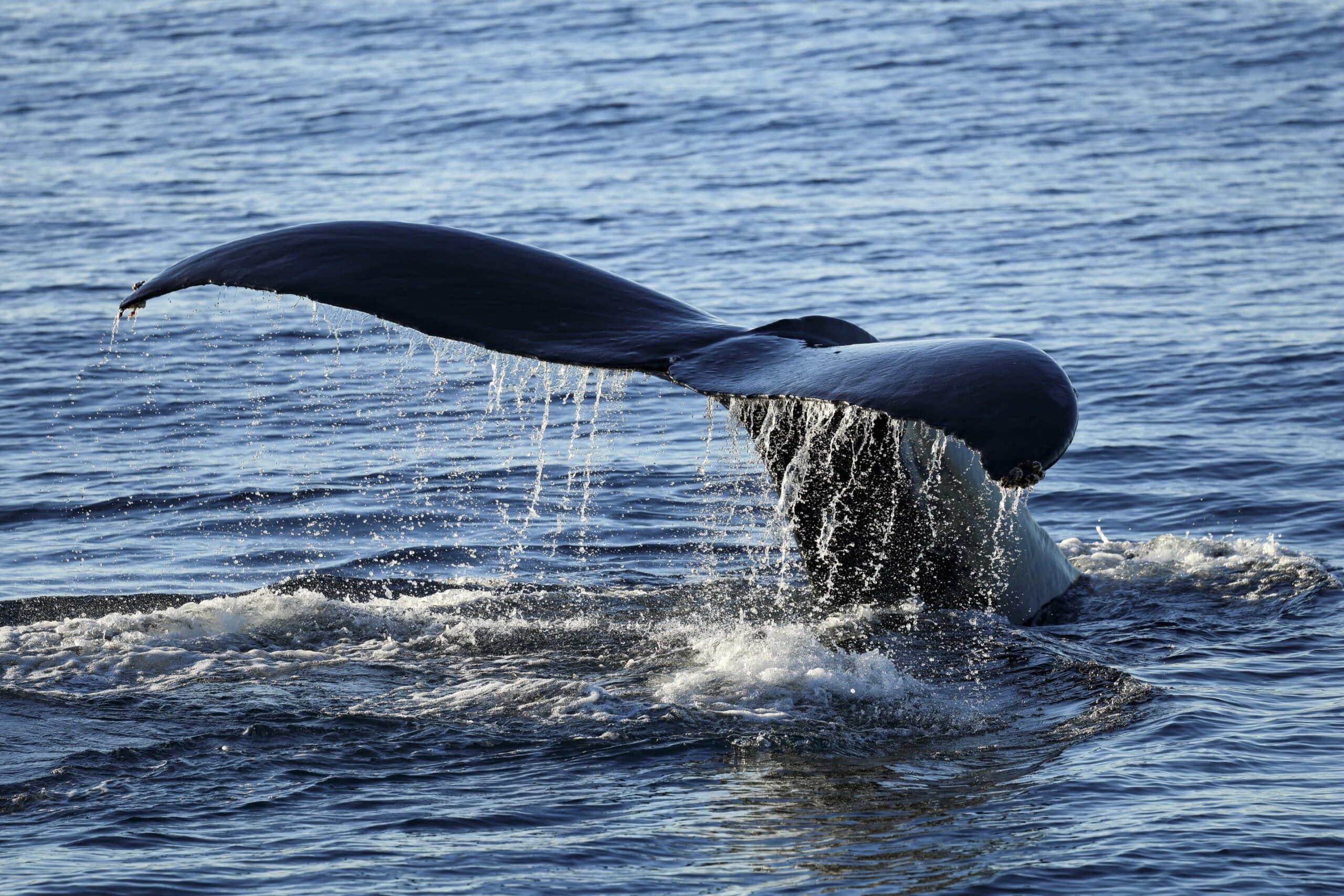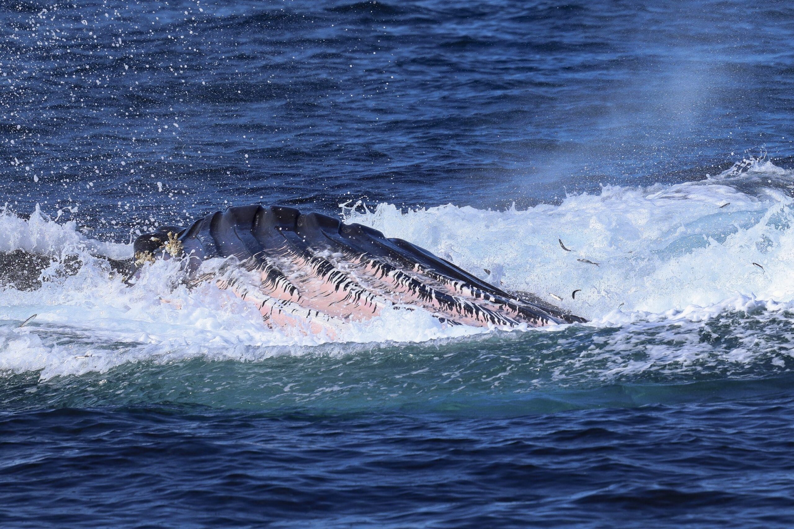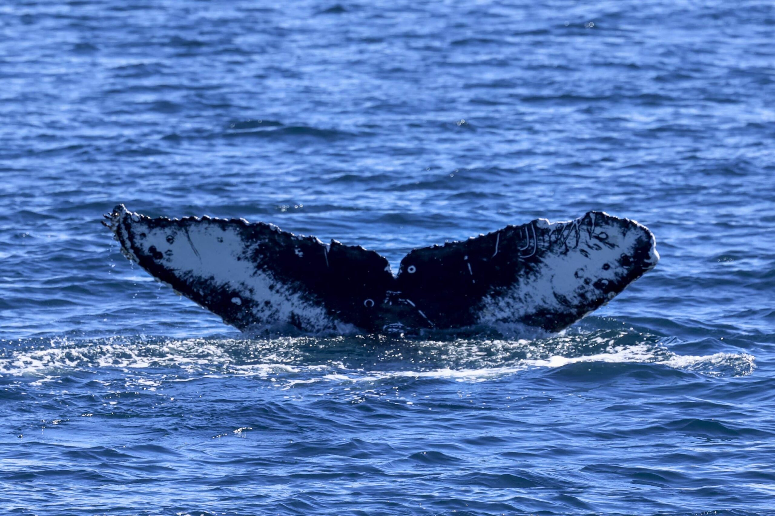 What is it about autumn weather and lighting for photography? It must be the fact we don’t have that marine layer, the coastal fog layer, in the Fall. And the light from the sun is at a different, lower angle, and the atmosphere is more clear, without the haze, particularly after the rain we had recently. Today was a stellar day for humpback whales. On our afternoon trip, we saw 6 individual whales, one about 5-miles offshore, a group of two and another group of three a couple of miles further out. We saw breaches from the group of three, probably from the calf, as we noticed a cow-calf pair, or mother and baby. The third whale was likely an escort male, hoping to have the opportunity to mate with the female. Two other whales were in the area. We did see a few dolphins feeding and swimming alongside the whales for a few minutes and a spectacular vertical lunge-feed next to the boat where we had just pointed out a school of fish.