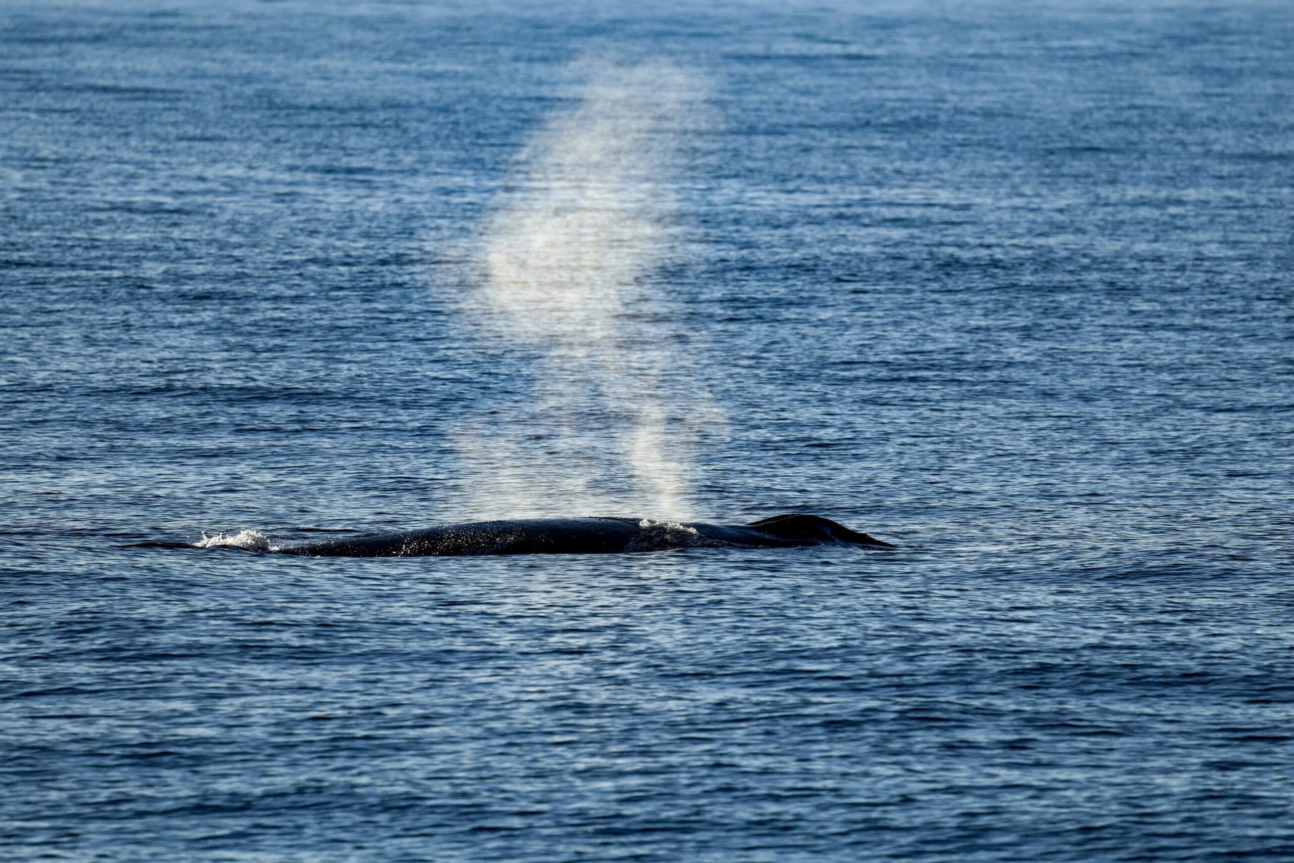 On our sunset trip, we went out to the coordinates where our afternoon trip had last seen the group of three whales. Sure enough, we found them and delighted in how intrepid they were, as they came up really close to our vessel a couple of times. We could see the size difference and had stunning views of the coastline as the whales were moving slowly to the north.