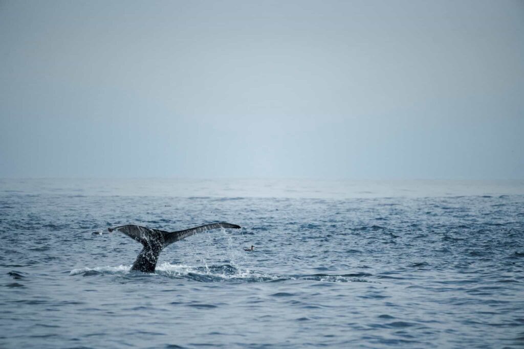 As soon as we pulled away from the dock, we had some “liquid sunshine”, a bit of rain came down for just a few minutes. We had seen virga, which is what happens when rain evaporates before it hits the Earth. Then, a few sprinkles came down at the edge of a large fog bank, which was sitting offshore to greet us as we entered the Pacific Ocean.