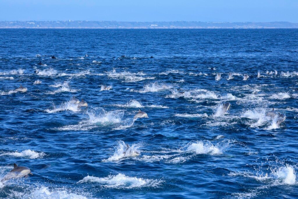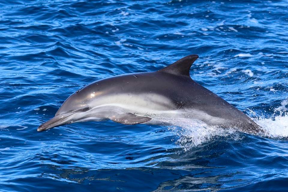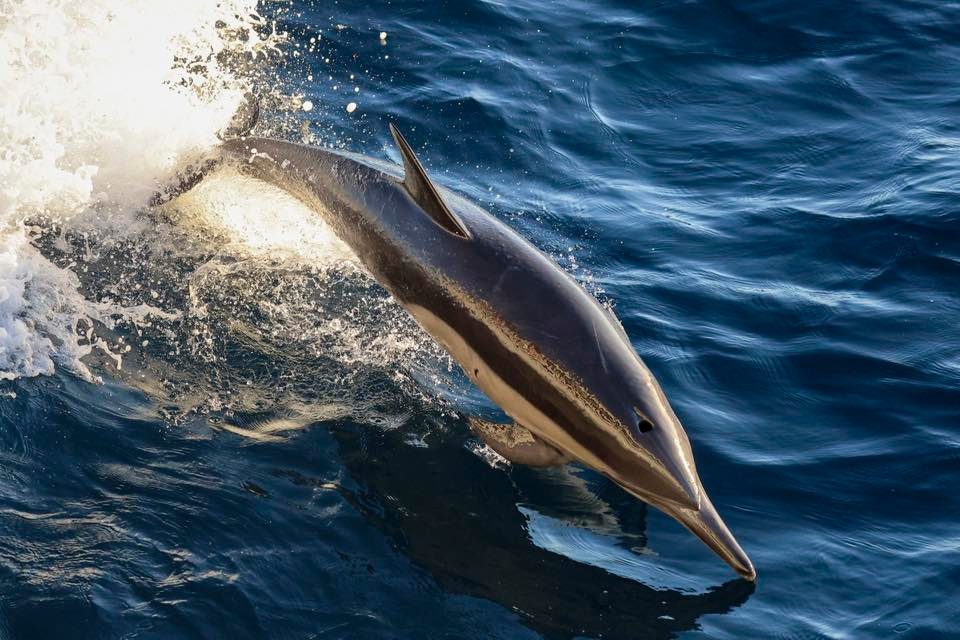 We had a gorgeous sunset trip with another huge pod of ~500 Long-beaked Common dolphins out beyond the drop-off to the SW. All the passengers were so happy to see the dolphins racing toward us! We got great looks as they rode the bow and surfed our wake! We were completely surrounded by the amazing pod! There were also a few feeding frenzies with hundreds of birds diving and feeding on big bait balls! We left the pod and followed the drop-off to the north to see if we could find something else. And just before we turned in, we sighted a few small poofs! We waited and then lost the whale. So we continued north and then sighted it again in full breach mode! Only a select few sighted it from afar. We were racing against the sunlight and at the very end, sighted it one more time and got a view of the tail! The sunset was beautiful and lucked out seeing a mini green flash!