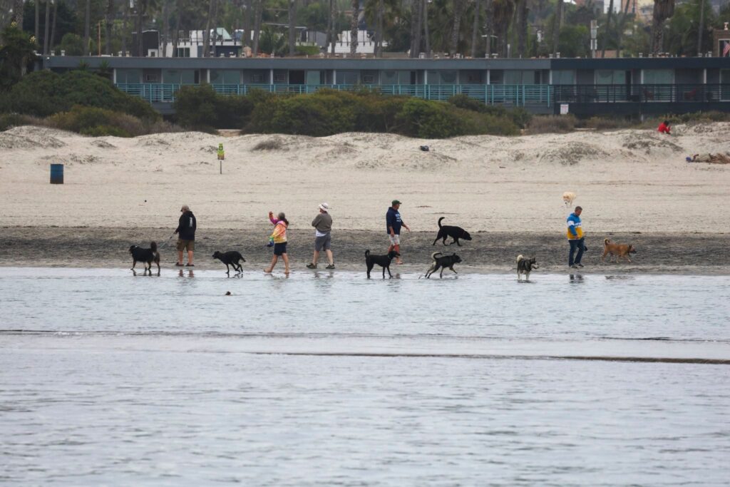 On our way back, we came across a pod of about 220 long-beaked common dolphins foraging about two miles west of the Mission Bay Channel entrance. We enjoyed their playful demeanor, as they came up to our vessel and surfed our wake and jockeyed for position off of our bow where our moving vessel provides a pressure wave. The dolphins get the “free ride”, without the need to move the caudal peduncle and tail flukes up and down to propel forward. The sun also came out. We were beneath the marine layer for most of our trip.