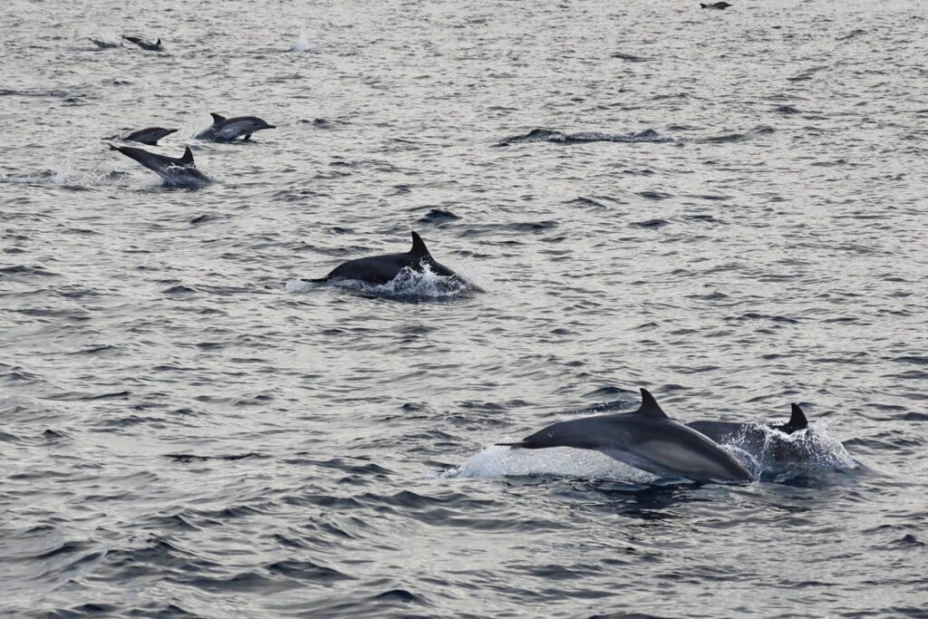 Further offshore, around 7-miles through the fog layer, we came across about 50 Long-beaked common dolphins foraging on small patches of schooling fish. Bait-balls of forage fish, such as the sardine and anchovy, was being consumed by many hungry mouths, including a few gulls and pelicans.