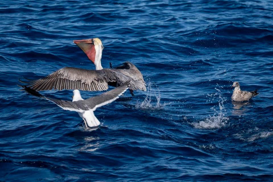 One afternoon trip is all for us today! Hundreds of long and short beaked common dolphins were hanging out off the drop off today. They were spread out over miles of ocean, the long-beaks just off mission bay and the shorties stretching up into La Jolla canyon. These are huge areas of nutrient upwelling, and it was obvious that the water was stuffed with bait fish, there were so many birds hovering above the dolphins that they almost looked like a wave in the sky above the water. We’ve had amazing wildlife for weeks and it’s all still coming down the line for fall!