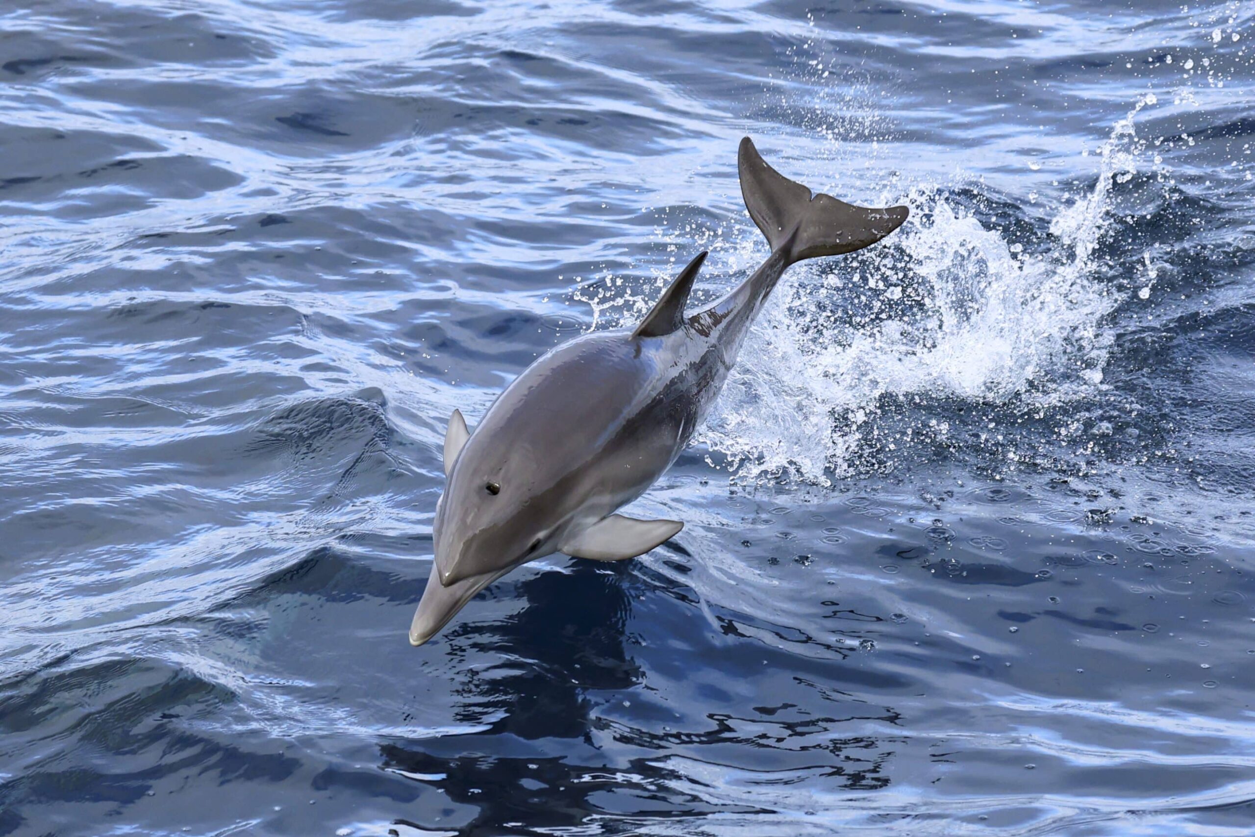 On our sunset trip, we cruised out to the southwest to the drop-off. We were hoping we would catch up with that trio of Humpbacks but instead found another huge bird pile to the west! There were at least 500 Long-beaked Common dolphins scattered about a 1/2 mile around us! We enjoyed them as they zoomed toward us to ride the bow and surf beside us! We also spotted a few cow/calf pairs! One calf in particular, was being very spunky and testing out the wake surfing! We also spotted some show-offs that breached over and over and over! We had a wonderful smooth ride in and the sunset was stunning!