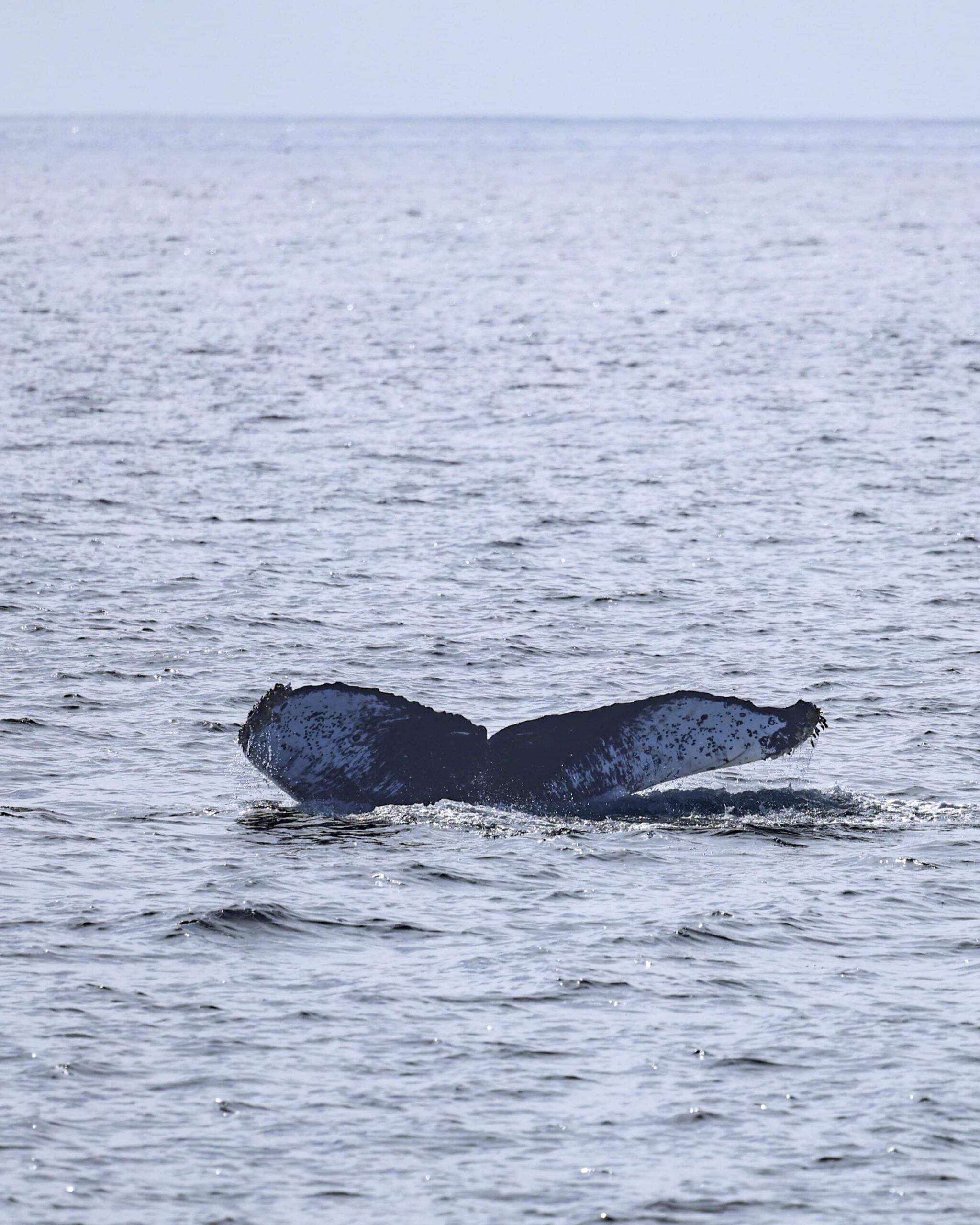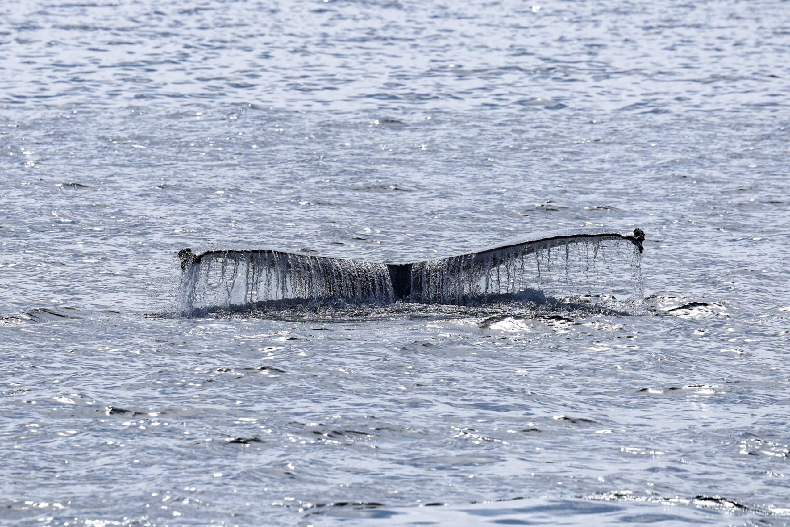 On our afternoon trip, we cruised up to the north in search for any and all wildlife. We took in the views of the coastline when we spotted a massive bird pile! There were hundreds of birds diving into the water about 4-miles away from us. We pointed our nose west in hopes of catching up with all the activity. We were in luck, on our way about a couple miles from the birds, we sighted a spout! We caught up with what we thought was a single Humpback! Then a second one appeared! We enjoyed their presence as they were coming up for 1 to 5 breaths and down for 3-10 minute dives. They didn’t follow a consistent pattern, so it kept things interesting! They were mostly heading south when on our last sighting they did a U-turn and went to the north. We figured out why on their next breath cycle! A third whale popped up among the pair! They were being pretty social and for our grand finale we got great looks at all three of their flukes!