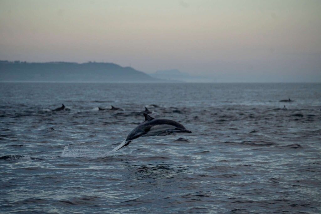 We went to hang out with the larger of the two first as the bottlenose tend to be more rare – they cruised in dreamy sunset light and launched out of the water doing upside down back flips over and over again! The long-beaked commons were on their most mischivious behavior – stampeding in the masses and leaping out of the water with SO MUCH force!