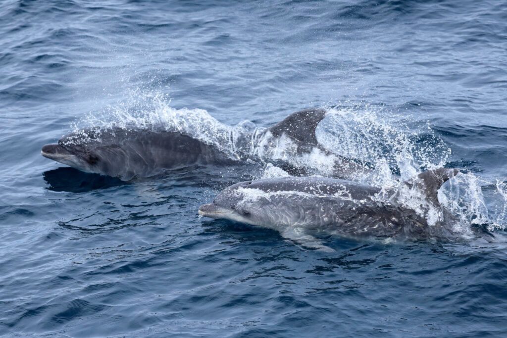 This Afternoon, we headed out on calm seas and unlimited visibility, after some searching we were able to locate about 50 long beaked common dolphins, as they raced around hunting for food. We could see a massive feeding frenzy – with thousands of seabirds, even more dolphins and who know what else – So we’ll be back out to search shortly!