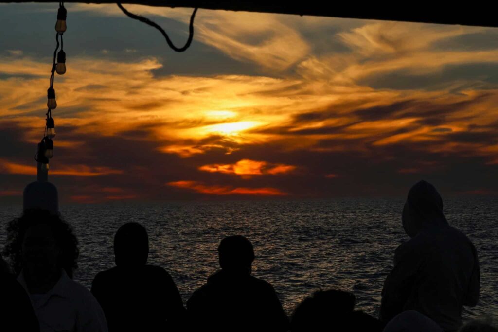On our sunset trip, Captain Brian brought us far offshore. We could barely see San Clemente Island, part of the Channel Islands, located about 70-miles from San Diego. We saw the snow covering the top of 10,834’ Mount San Jacinto in Riverside County to the northeast past LaJolla and the north county of San Diego.