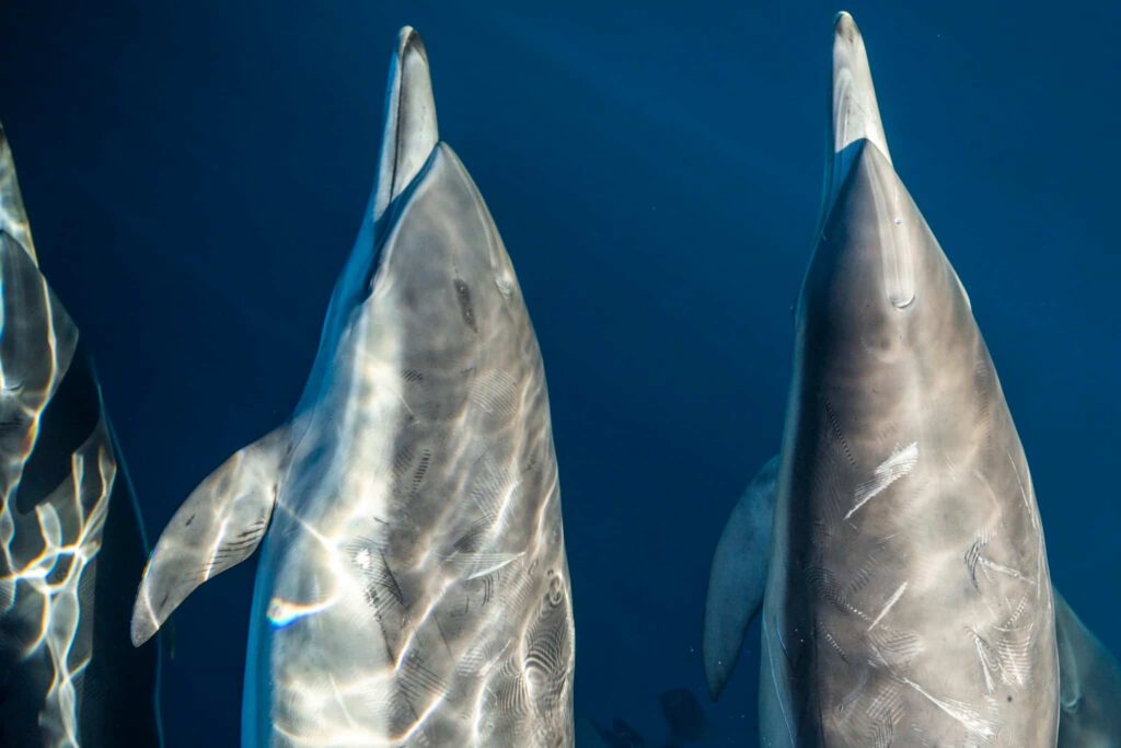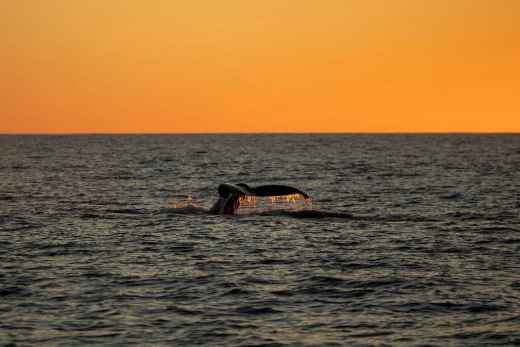 The magic continues, Santa Ana winds have shifted our usual sightings around a bit but we aren’t complaining! This has been one of the best fall seasons in a long time! Hundreds of common dolphins were spread across many miles – we saw maybe 500 stretched out, almost as if creating a big unified sweep/ search of the area. They all came together hunting near the end, feeding on small bait fish. The evening finished off with a umback whale crushing south to Mexico through the last golden rays of suns light. We got just the right angle to see a firefalll off the whales tail as it went on a sounding dive. The drops of water slowly dripping off the whales tail as it lifted high to the sky, toasty orange light illuminating every last drop, looking like a lava flow into the sea.