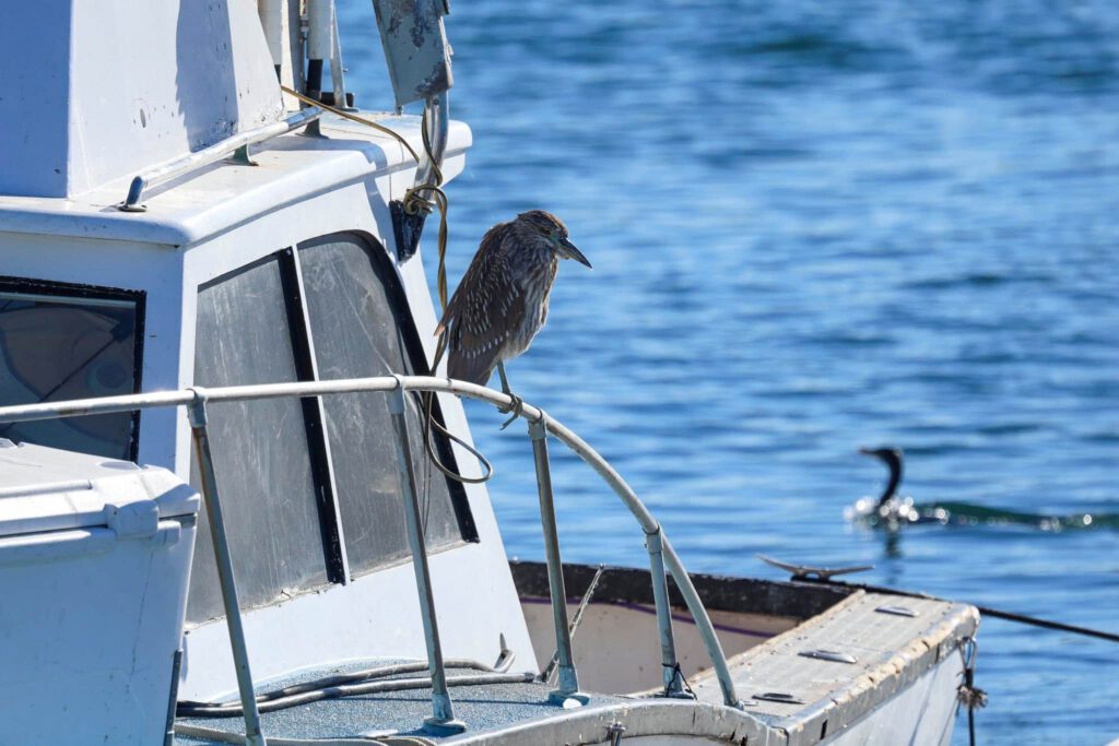 We enjoyed seeing the antics of the California sea lions at the floating bait dock. We did see hundreds of birds, including a lone black-crowned night heron, great egrets, Brandts cormorants, Brown Pelicans, Western and Heermann’s gulls. Just beyond the channel entrance, we saw about 10 Brant geese, a couple of red-necked phalaropes, black-vented shearwaters, an uncommon Cocos booby and a lone surf scoter.