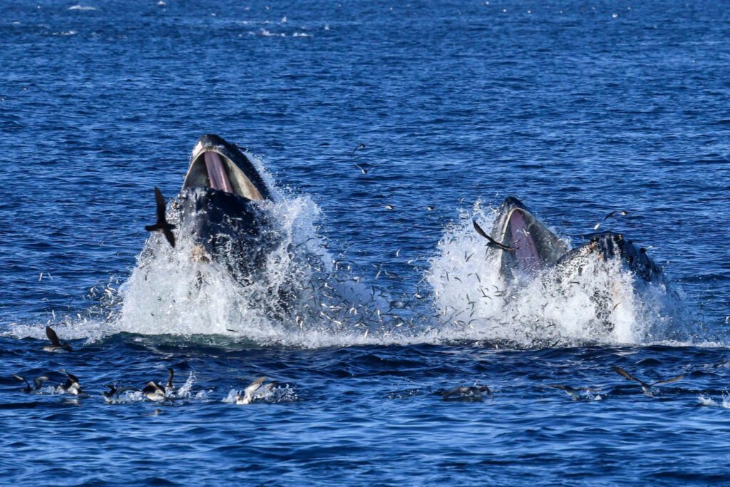 What we found out there was a quad pod of vertical lunge-feeding humpback whales!