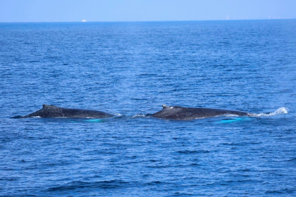 Beyond the the drop -off a duo of humpback whales were sighted! This pair were syncing up their dives and hanging out close together while exhibiting travel mode behaviour. We saw majestic whale tales on most of their dives too.